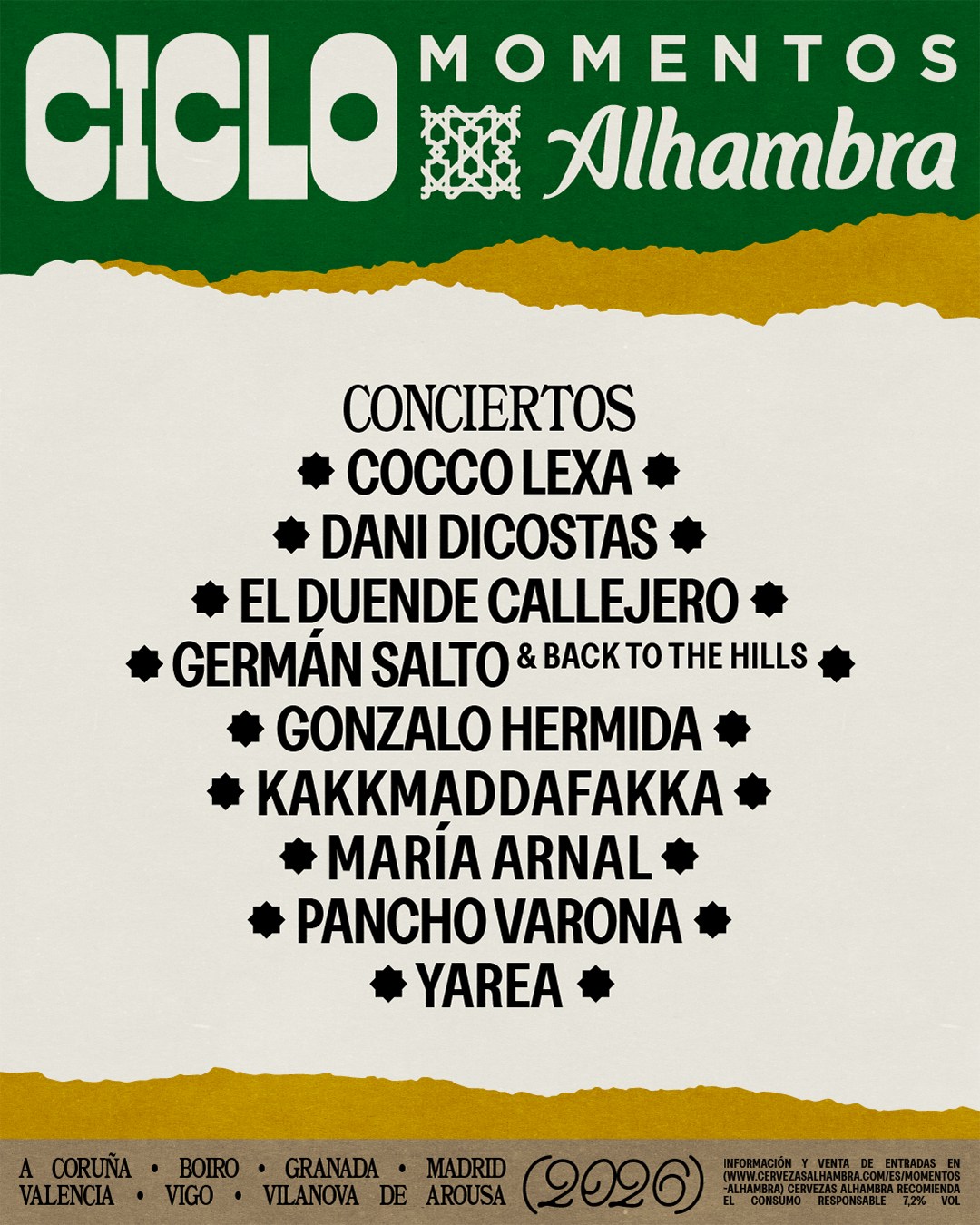 Más allá de las fronteras gallegas, el ciclo Momentos Alhambra contará en 2026 con un elenco de altura que incluye a la vanguardista María Arnal, el mestizaje de El Duende Callejero, la energía noruega de Kakkmaddafakka y el power pop refinado de Germán Salto y Back to The Hills.