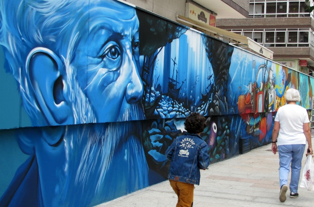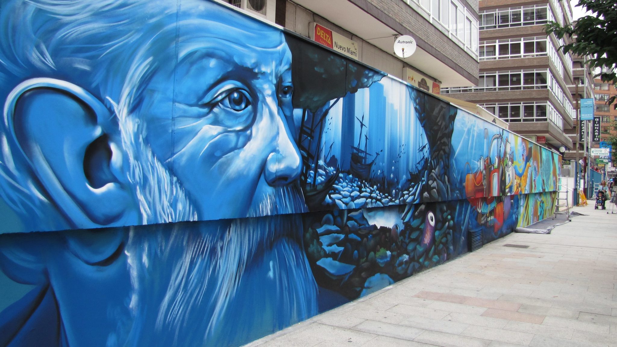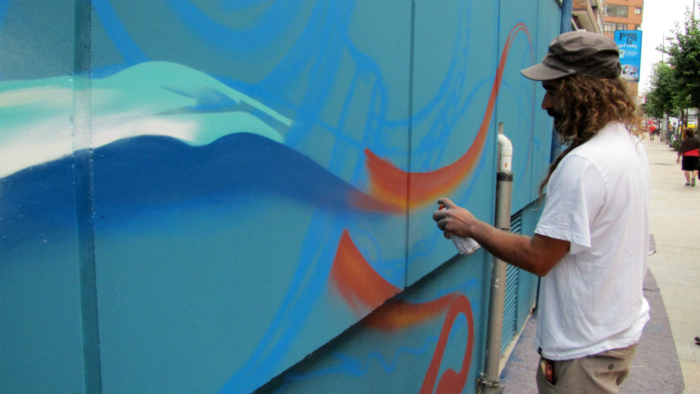 A base de grafiti y brocha, Alejandro Fernández, Gonzalo Alonso y Pow son los encargados de «iluminar» la AVenida da Florida con un dibujo de claras referencias a Vigo y su conexión con el mar. Alex explica que trabaja a menudo con sus dos compañeros y que entre los tres se encargan ahora de decorar unos 100 metros de muro en el barrio de As Travesas.