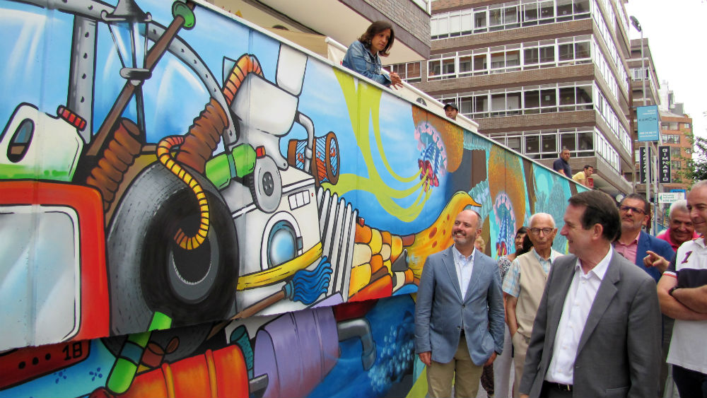 Los colores azul, rojo y verde destacan al paso de los peatones. A nadie se le escapa que donde hasta hace poco había un muro inerte, ahora se descubren tonos que evocan el paso por la ciudad del escritor Julio Verne.