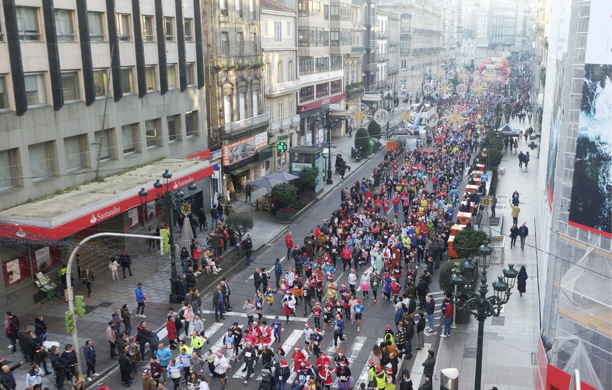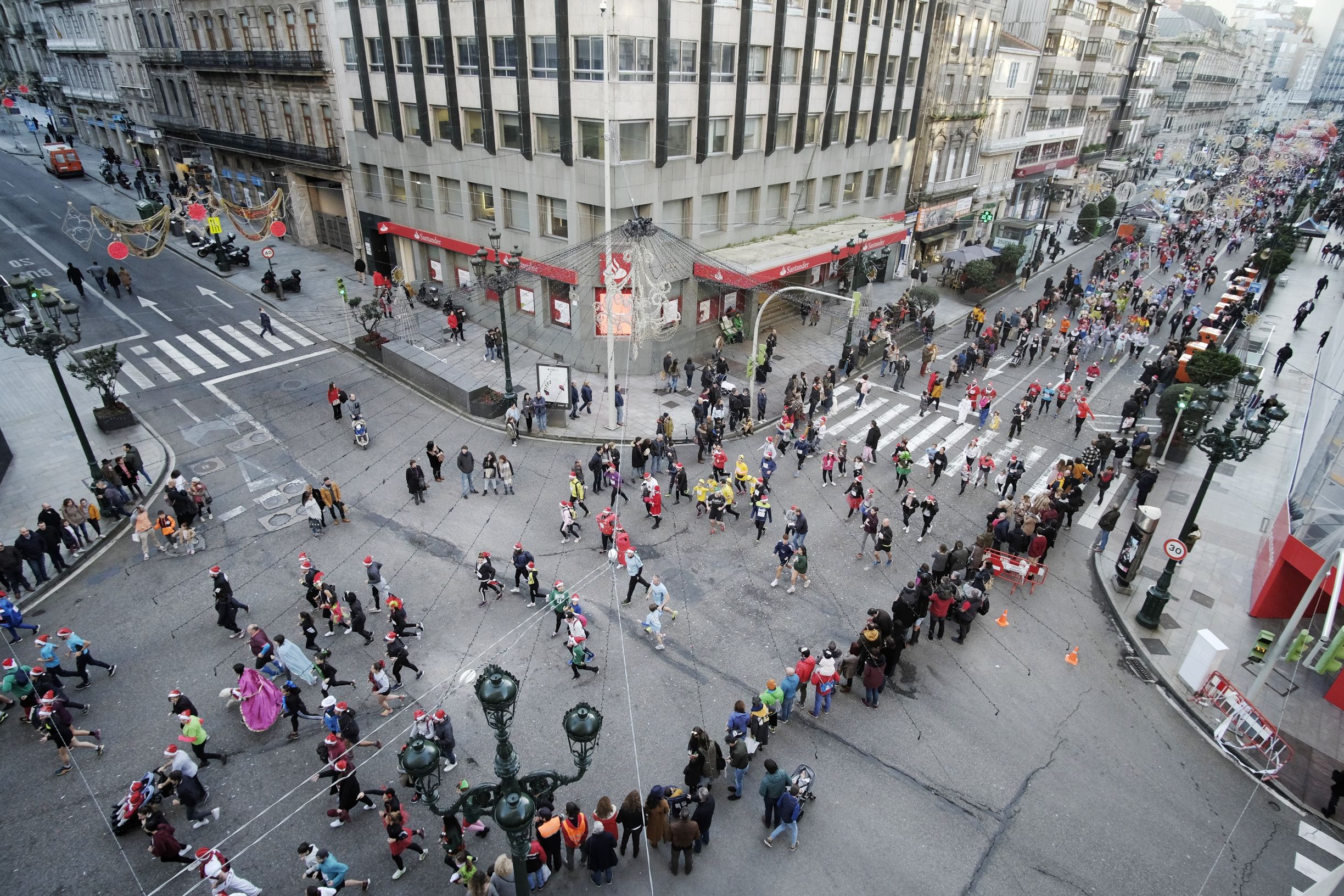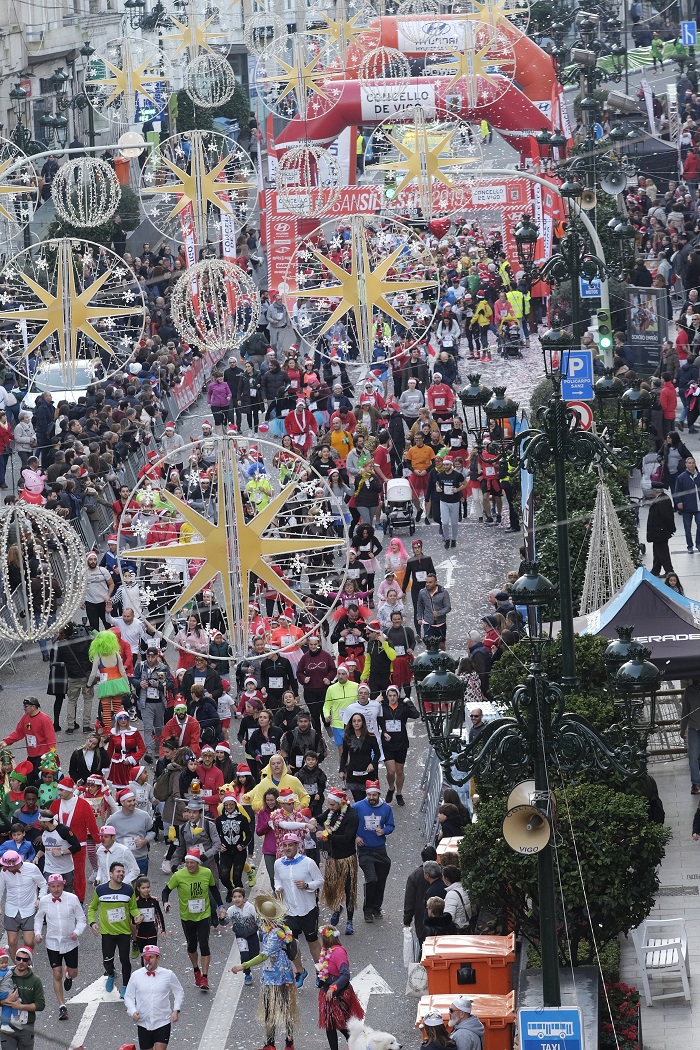 El festivo final de año atlético en Vigo volvió a superarse a sí mismo gracias a las ganas de los vigueses por celebrarlo de forma tan amena y divertida como saludable. Y también por la inclusión de participantes de veintiún países de Europa y América. Porque la broma de Abel Caballero, acompañado del edil de Deportes, Manel Fernández, tras dar a viva voz la cuenta atrás de salida (“ahí va un estadounidense, seguro que es el alcalde de Nueva York”), tenía visos de realidad: en la inscripción oficial de la prueba no competitiva había siete estadounidenses. Europeos, desde Noruega y Alemania a Irlanda o Rumanía. Además, corredores de las cuatro provincias gallegas, de otras treinta y cinco más del resto del Estado y de la ciudad autónoma de Melilla. La locura.