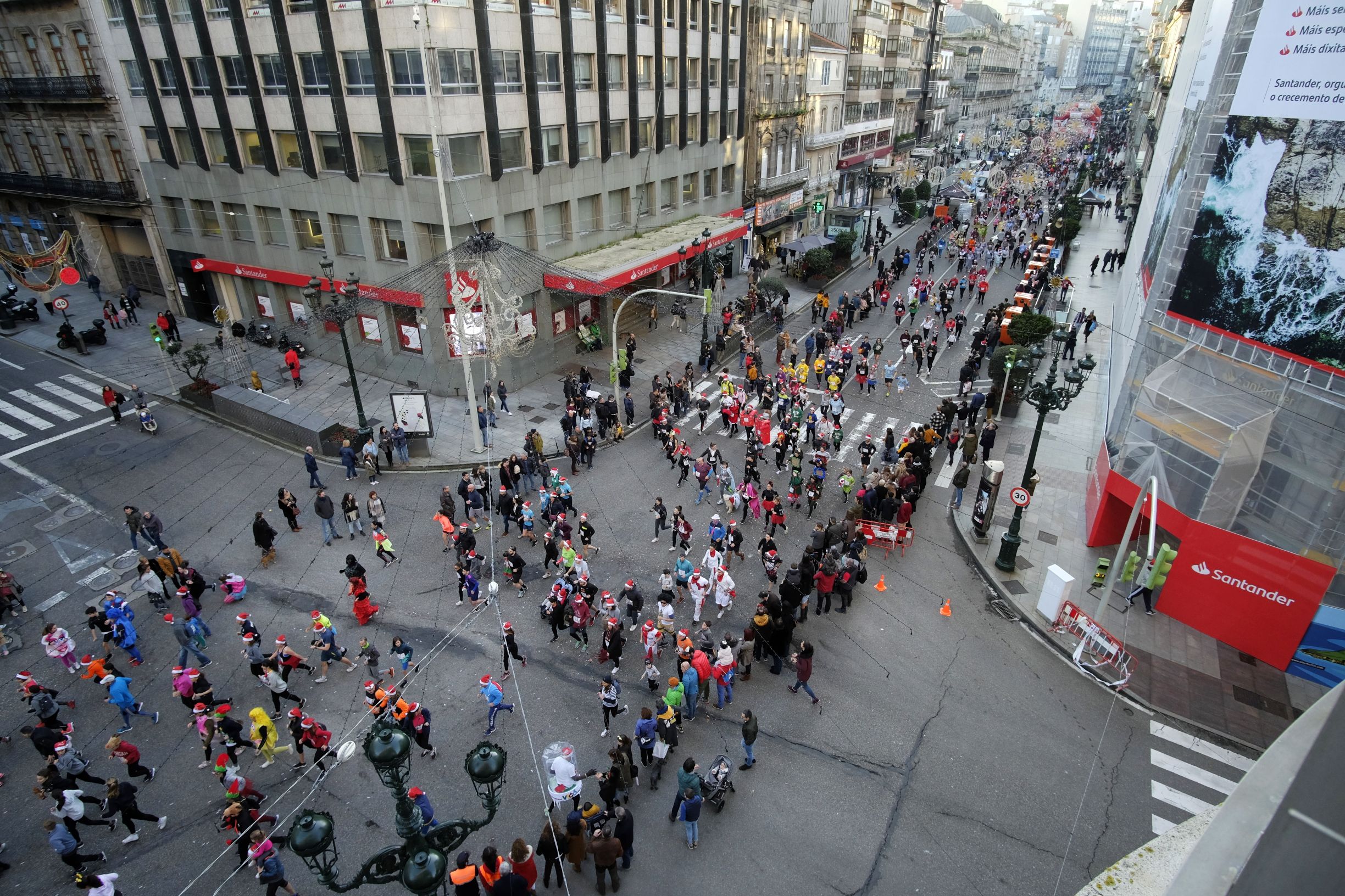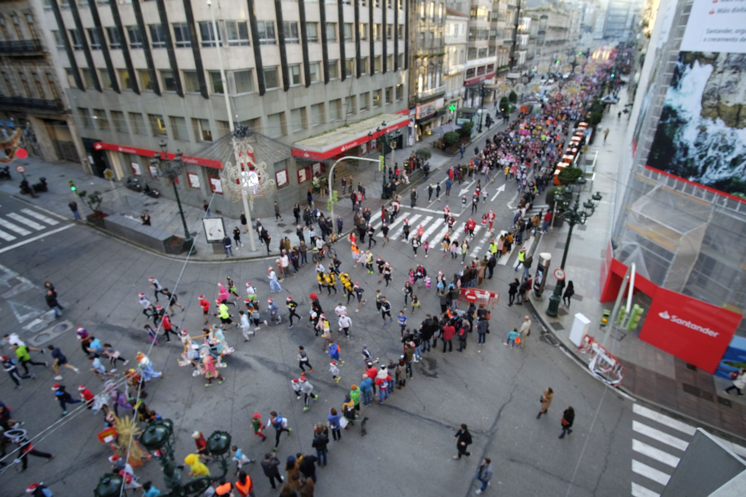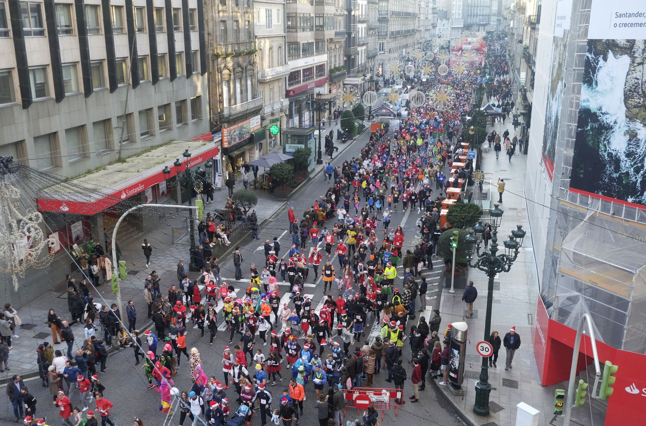 El festivo final de año atlético en Vigo volvió a superarse a sí mismo gracias a las ganas de los vigueses por celebrarlo de forma tan amena y divertida como saludable. Y también por la inclusión de participantes de veintiún países de Europa y América. Porque la broma de Abel Caballero, acompañado del edil de Deportes, Manel Fernández, tras dar a viva voz la cuenta atrás de salida (“ahí va un estadounidense, seguro que es el alcalde de Nueva York”), tenía visos de realidad: en la inscripción oficial de la prueba no competitiva había siete estadounidenses. Europeos, desde Noruega y Alemania a Irlanda o Rumanía. Además, corredores de las cuatro provincias gallegas, de otras treinta y cinco más del resto del Estado y de la ciudad autónoma de Melilla. La locura.