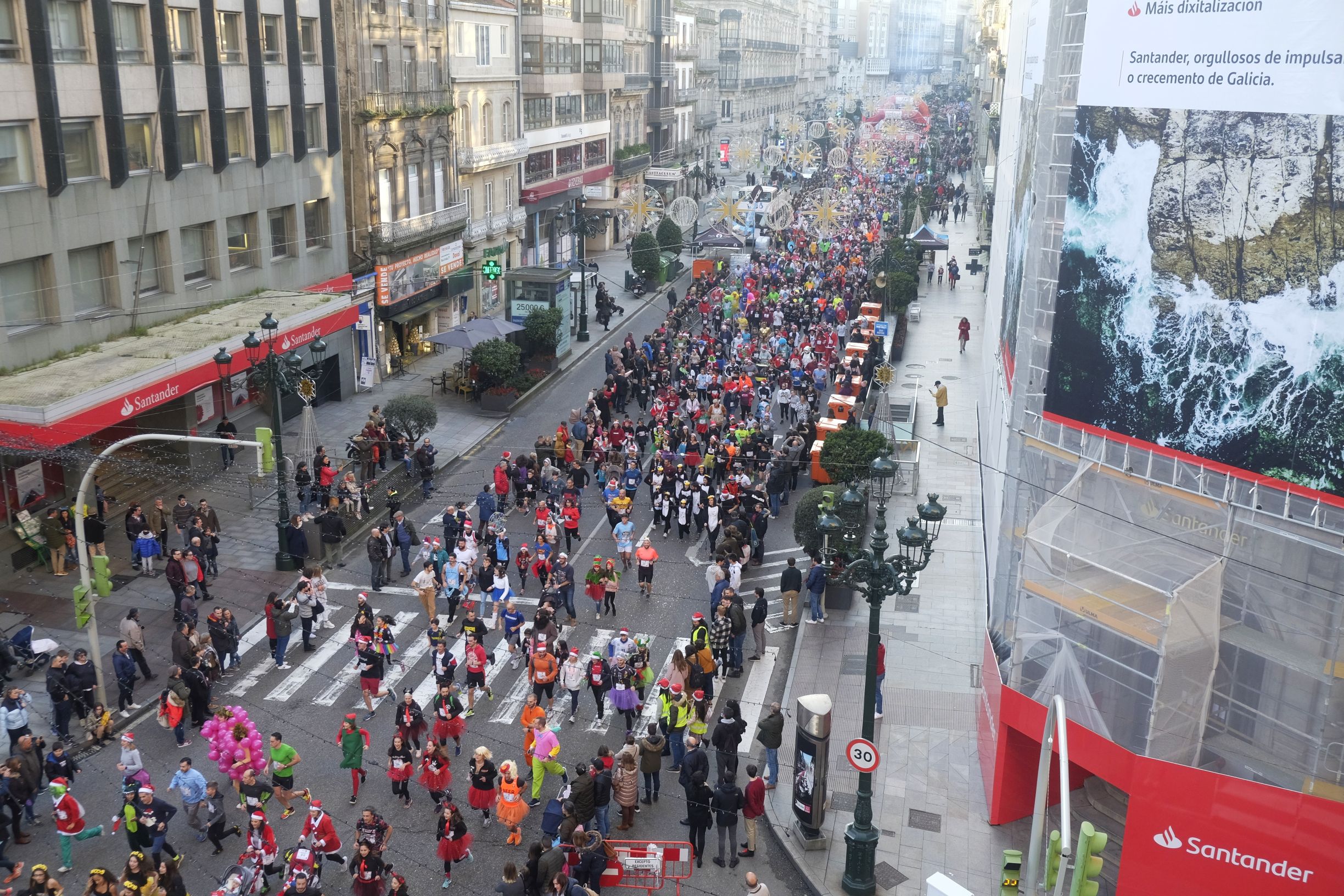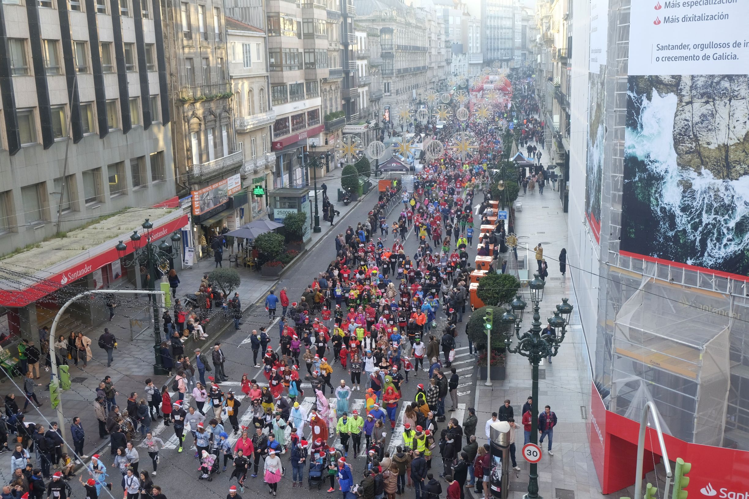 Era una tarde que también contó con público animando desde ambos lados de las calles de paso (desde Policarpo Sanz a la ciberfuente de Rosalía y regreso por Areal, el Ensanche y el Casco Vello, evitando en tapón de la Praza da Igrexa para completar unos 3.7 kilómetros) y, sobre todo, llena de cámaras entre los corredores, de móviles e incluso de suerte: a la participante 4.268 se le cayó su teléfono móvil de la mochila cuando enfilaba la llegada y quienes venían detrás la avisaron y lo pudo recuperar. ¡Como para empezar el año sin él!