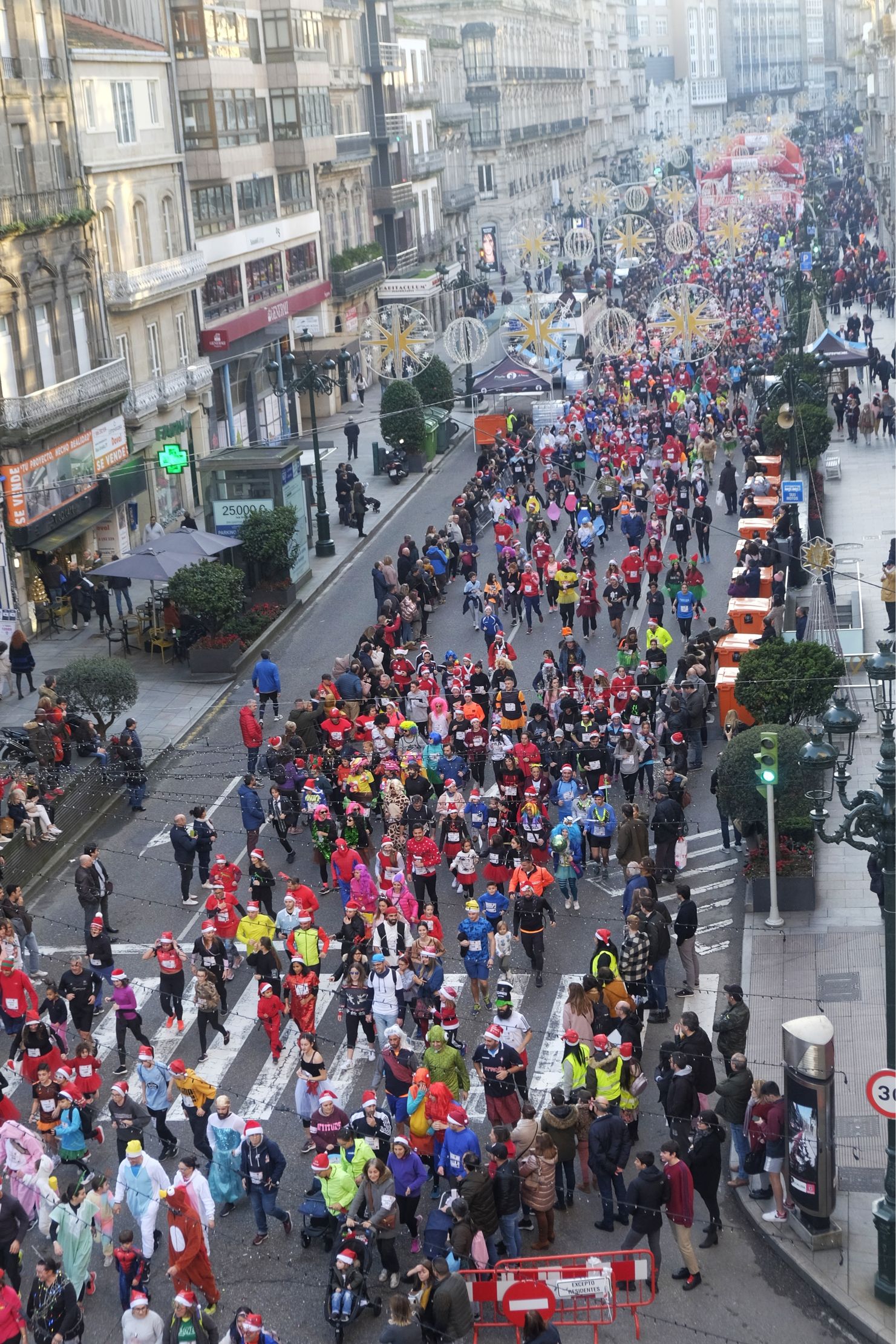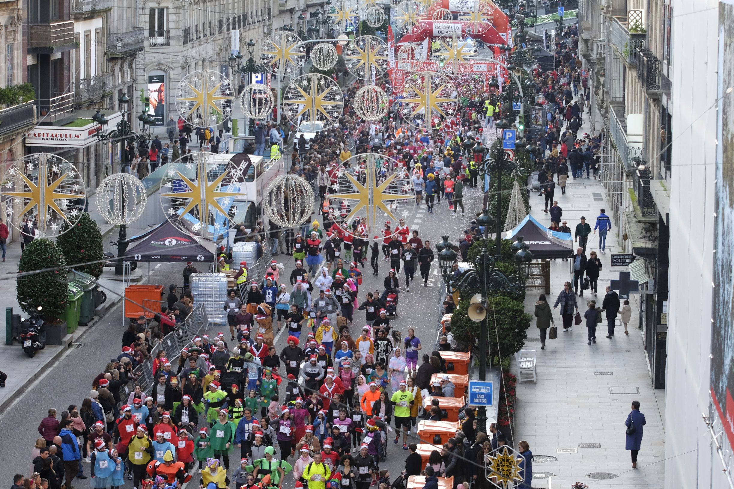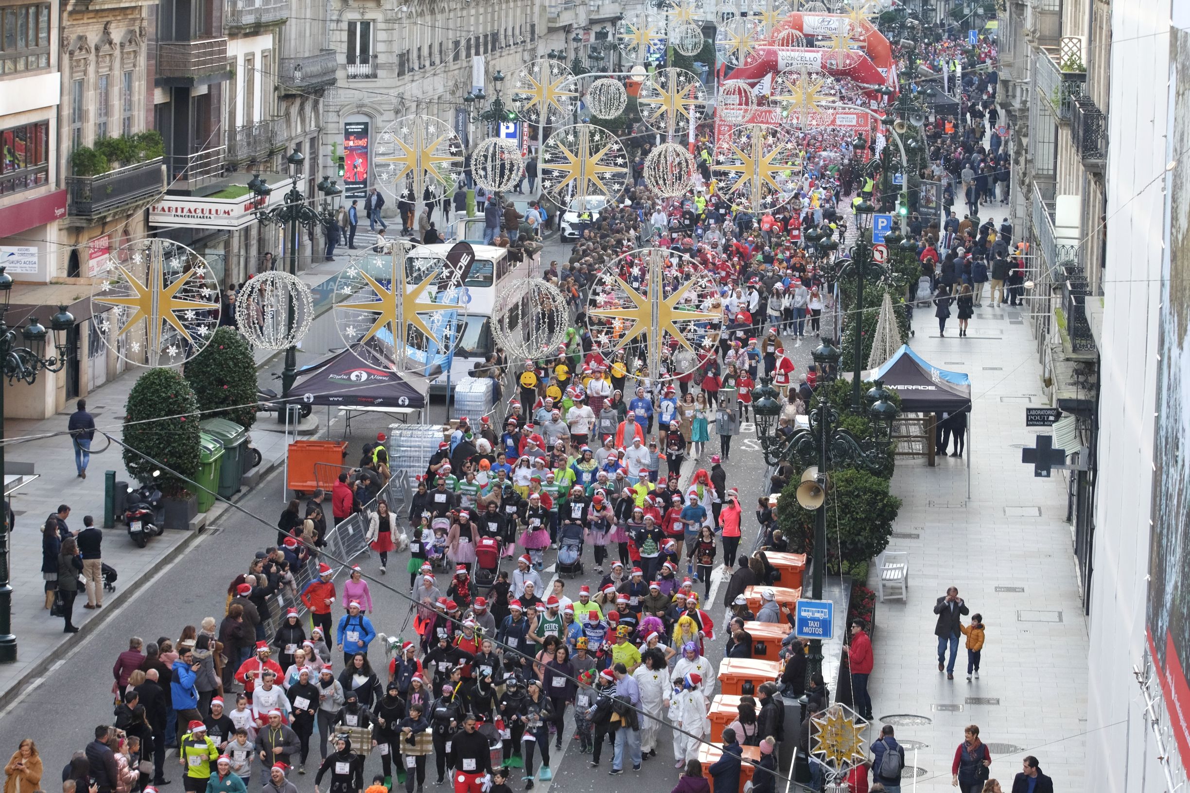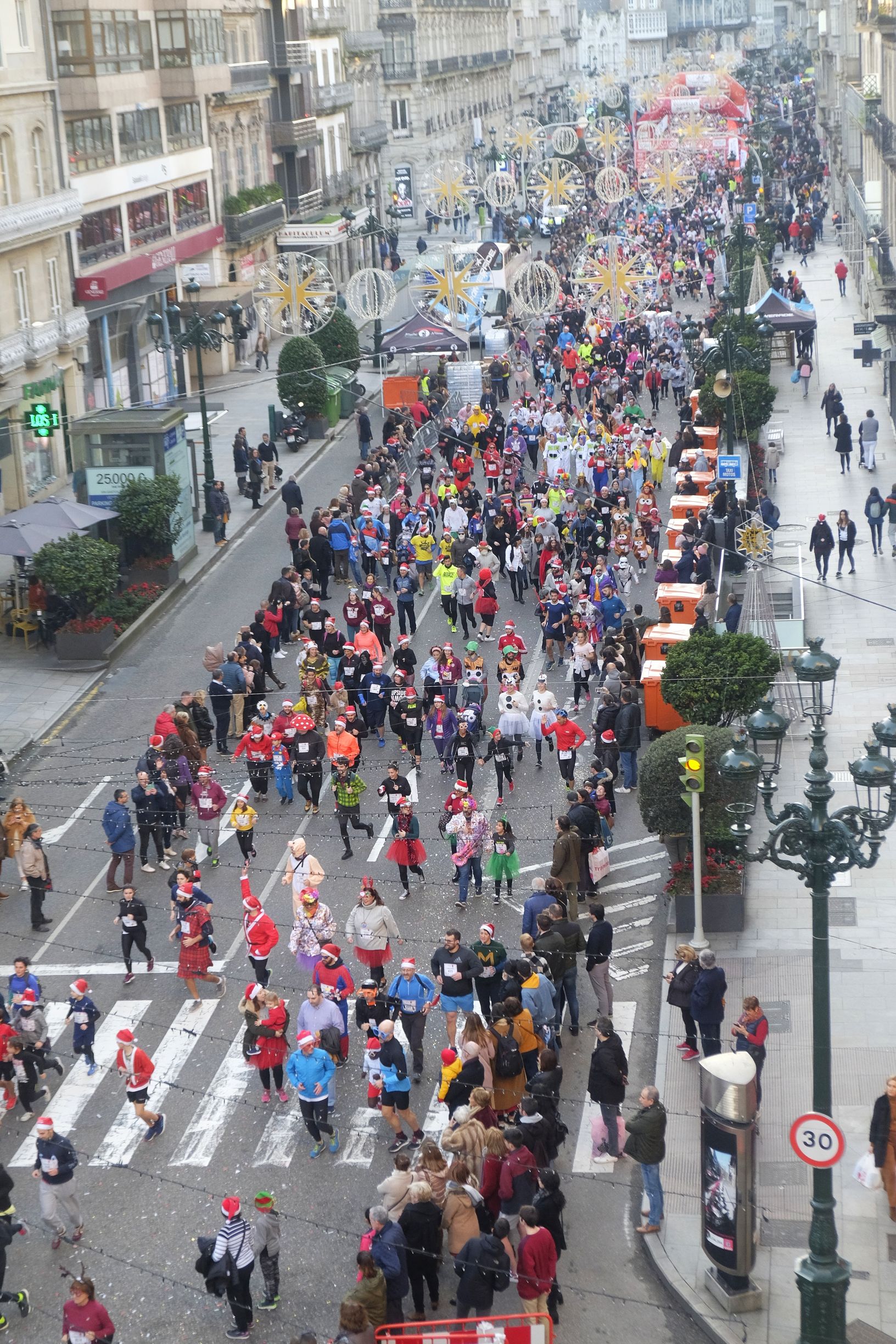 De récord en récord para la “mejor San Silvestre del mundo”, según dijo Abel Caballero, alcalde de Vigo, en la salida de la decimoquinta edición, la más numerosa de su historia (unas 12.500 personas, estimó el Concello) y precisamente en su debut en el centro de la ciudad tras seis ediciones consecutivas en la Alameda. Once minutos y veinte segundos duró la partida de los corredores, tal era la aglomeración de participantes.