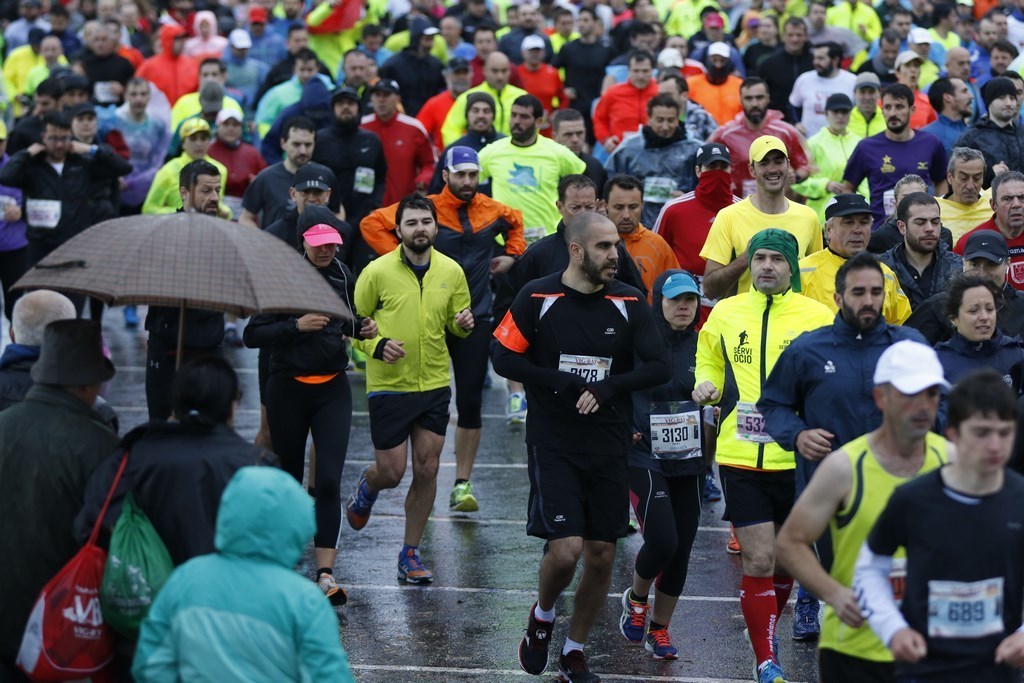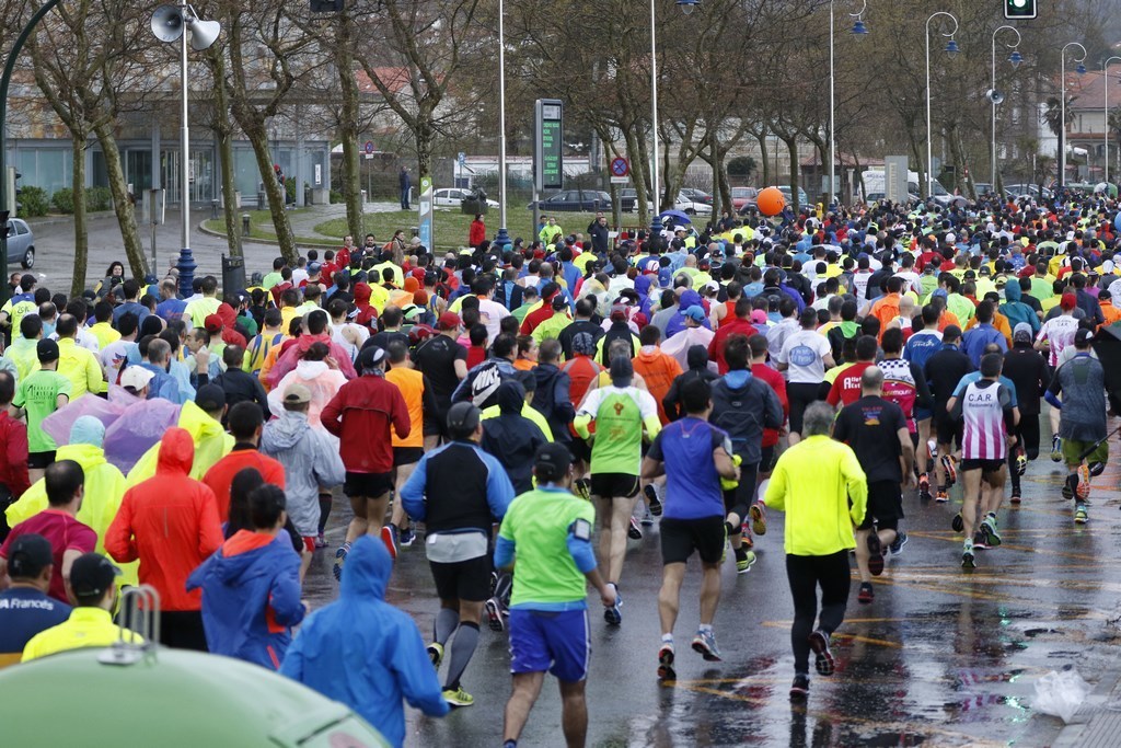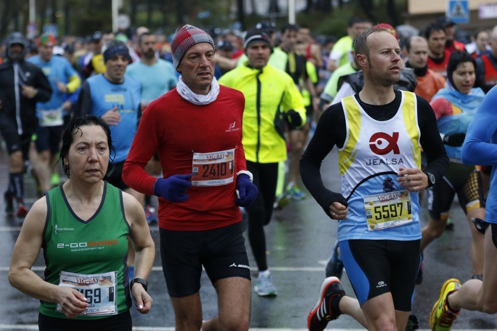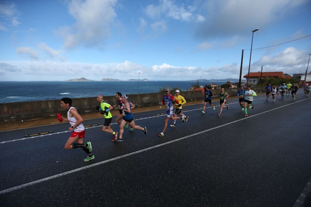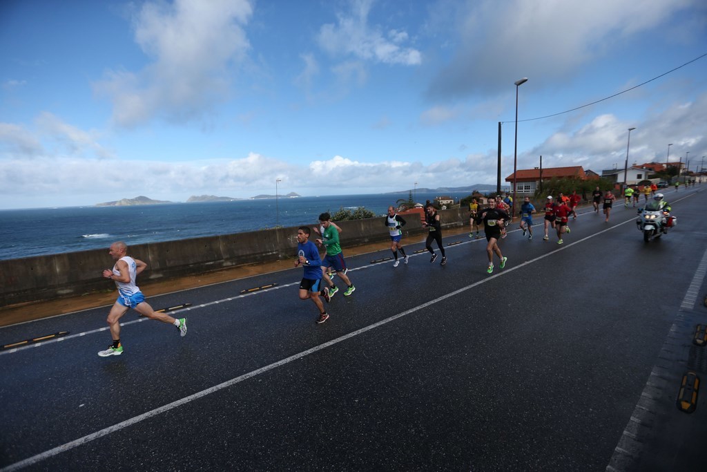 Las previsiones meteorológicas no fallaron y la XVI Medio Maratón Gran Bahía Vig-Bay se disputó con un tiempo desapacible, tormentoso para empezar desde la línea de salida de Samil y mejorando de camino hacia la meta en Baiona.
