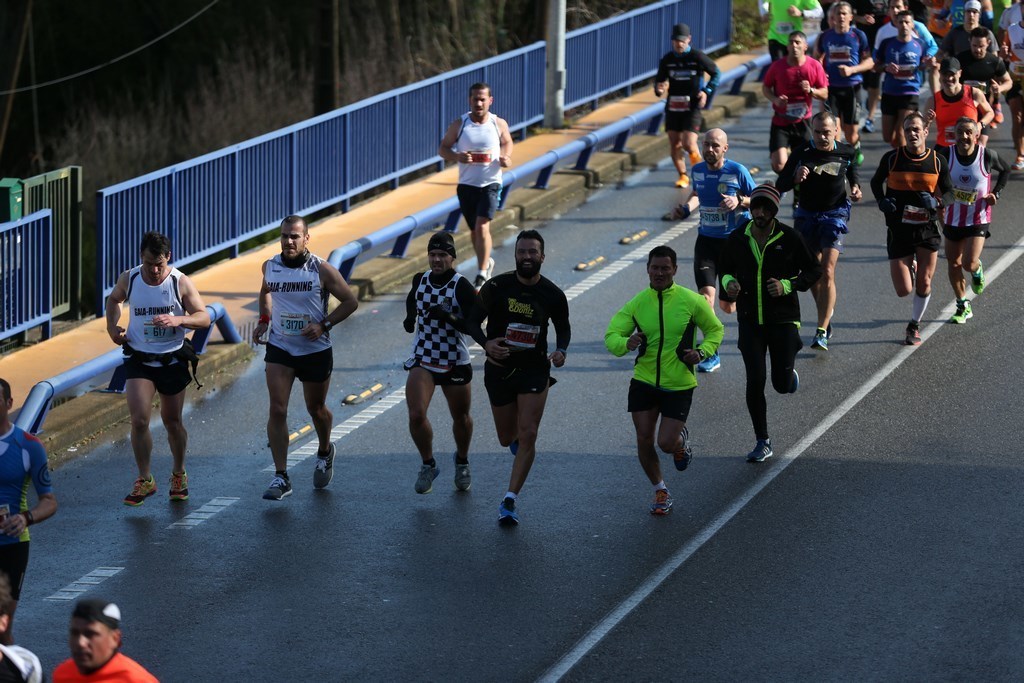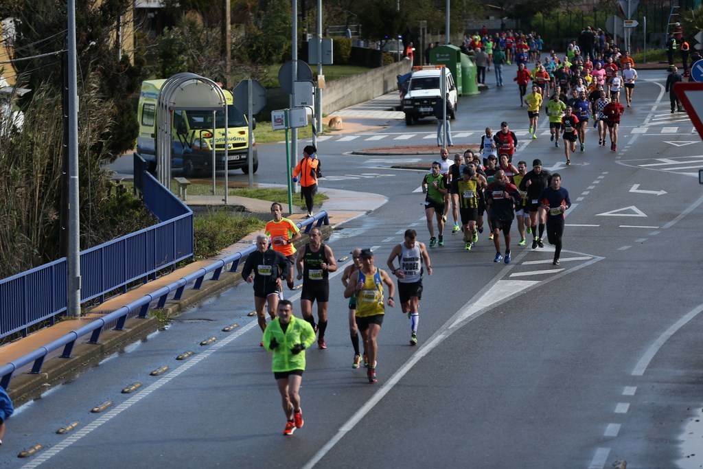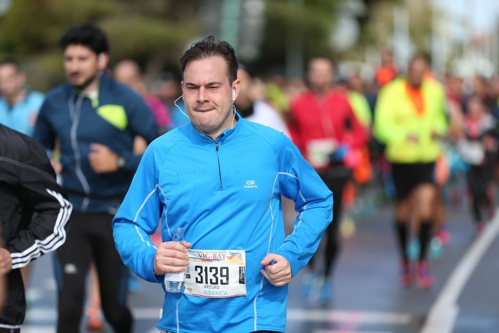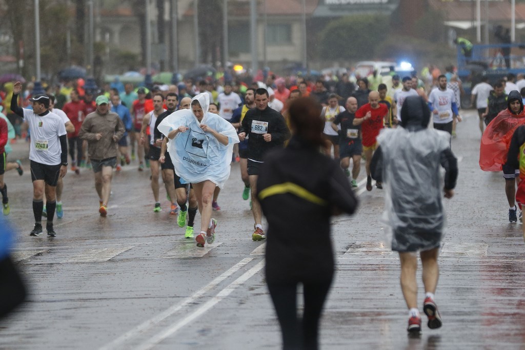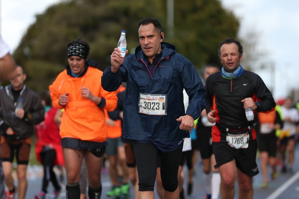 Las previsiones meteorológicas no fallaron y la XVI Medio Maratón Gran Bahía Vig-Bay se disputó con un tiempo desapacible, tormentoso para empezar desde la línea de salida de Samil y mejorando de camino hacia la meta en Baiona.