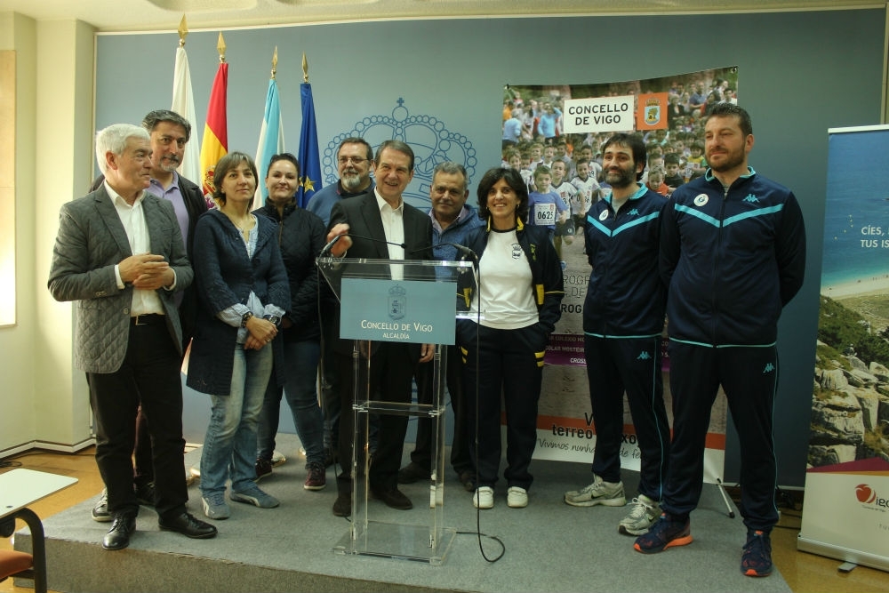 Acompañado polo concelleiro de Deportes, Manel Fernández, e por representantes de todos os centros educativos da cidade que desenvolven a iniciativa xunto coa Agrupación de Atletismo Escolar Xóvenes Atletas, o rexedor animou aos centros de ensino a continuar con este «magnífico labor».