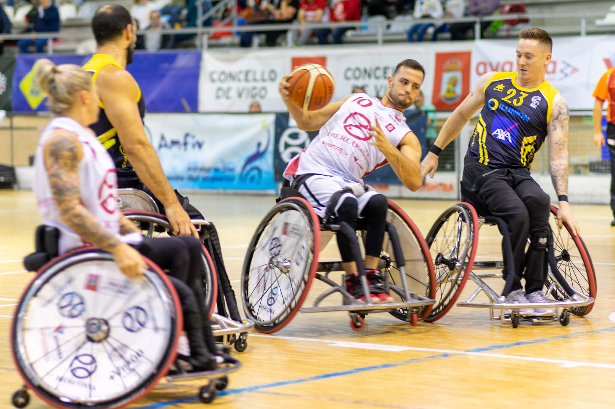Hay partidos que quedan grabados para siempre en la memoria de los aficionados. Y el Iberconsa Amfiv se está acostumbrando a que sus visitas a Madrid para enfrentarse al todopoderoso Ilunion tengan un sitio reservado en el archivo de todos los seguidores del baloncesto en silla de ruedas y, cómo no, sobre todo de los vigueses. Porque si hace dos años conseguía imponerse en la prórroga (60-63) en una de las múltiples gestas de los “Cinco magníficos”, en esta ocasión el conjunto de César Iglesias volvía a hacer historia al sobreponerse a un mal inicio de partido (22-9, min.10) y no bajar los brazos cuando peor pintaban las cosas (60-53, min.32) para completar una remontada histórica y con un parcial final de 4-20 convertirse en el primer equipo en derrotar al hasta entonces líder invicto. Y lo hizo, además, en la enésima exhibición defensiva de la temporada, con mención especial para el trabajo en este capítulo de la australiana Shelley Cronau, del británico Sam Mack y de Julio Vilas, y con una aportación coral en ataque, con todos los jugadores sumando y aportando para conseguir una victoria que supone también una importantísima inyección de moral para el conjunto vigués.