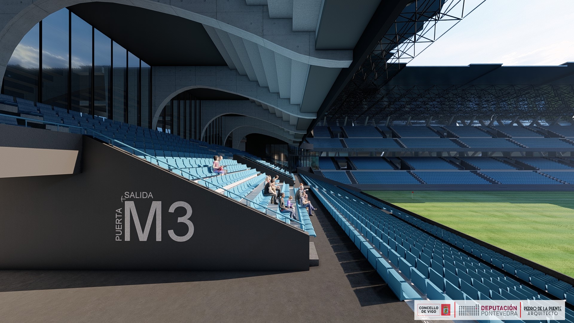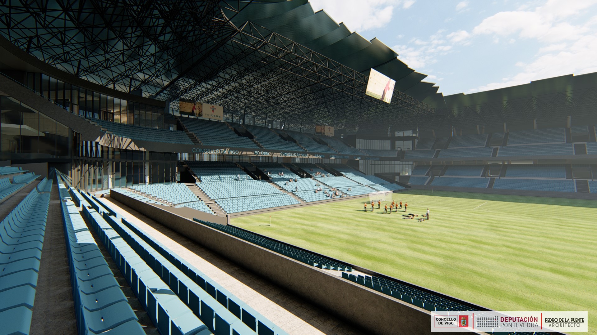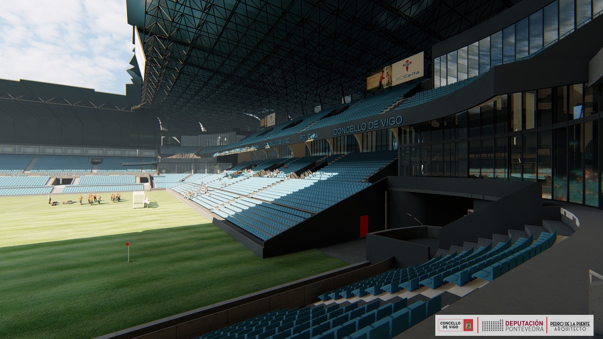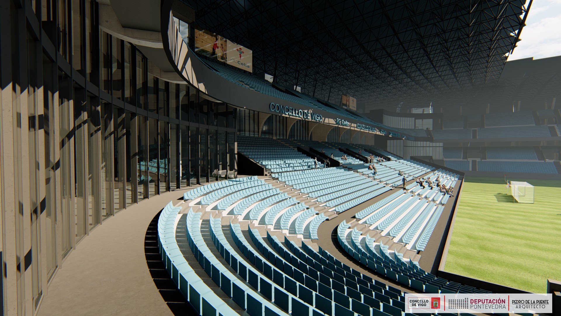Además, se instalarán ocho ascensores que van a dar servicio a otras partes del campo, ya que habrá una comunicación con Tribuna y Río. También habrá locales para uso comercial, oficinas y zonas para servicios del estadio. Todos ellos serán “propiedad del Concello de Vigo”, reiteró.
