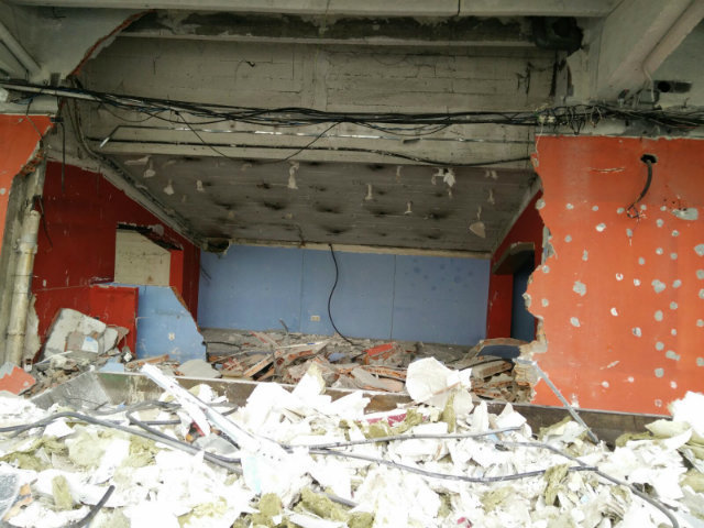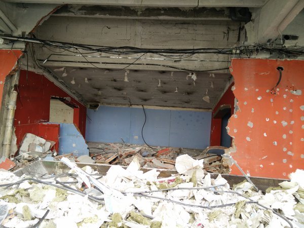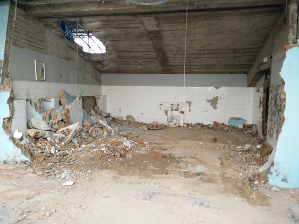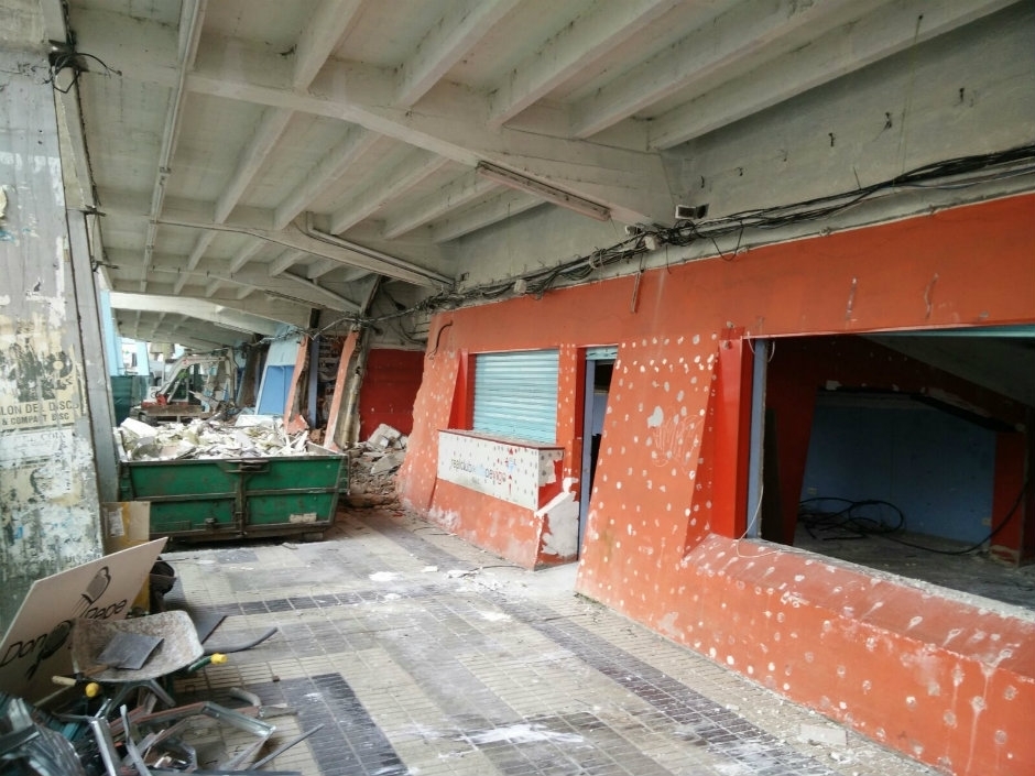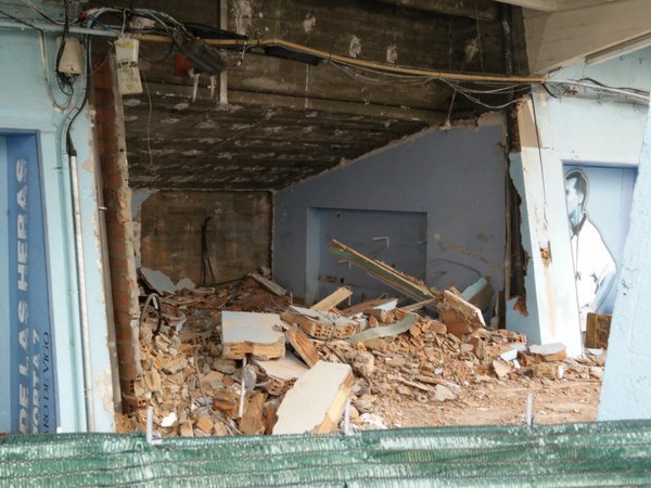 Las maquinaria pesada derribó poco a poco las distintas paredes y, a continuación, los escombros eran colocados en contenedores para su traslado. Esta fue la constante a lo largo de la jornada, lo que atrajo a numerosos curiosos debido a la espectacularidad de la tarea y su ruido.