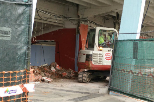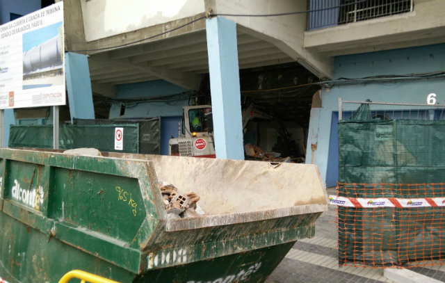 En los primeros días de enero, el campo de fútbol vigués sufrió unas profundas inundaciones que afectaros a las oficinas y la cafetería que el Celta tenía debajo de Tribuna. El bar ya no volvió a abrirse y este miércoles comenzó la demolición de la fachada de la zona. Desde hacía varias semanas, el aparcamiento del fondo se encontraba vallado por el avance de las obras en la grada de Preferencia y, en los últimos días, la zona vallada incrementó su tamaño y ahora comenzó una actuación más fuerte.