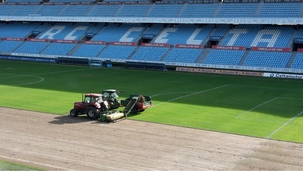 La renovación del terreno de juego estará lista en unos diez días y su coste, de alrededor de 380.000 euros, lo asumirá el Celta después de llegar a un acuerdo con el Concello el pasado viernes por el que el club celeste se hará cargo del mantenimiento del césped de Balaídos.