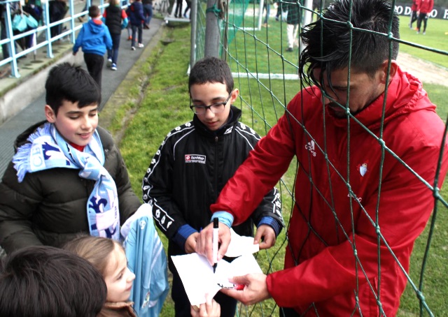 Al término del entrenamiento llegó el momento esperado por todos los pequeños. Manuel Agudo ‘Nolito’ fue el primero en acudir a las inmediaciones de la grada para firmar a todos los que allí estuvieron. A continuación, se metió todo el grupo en el campo para realizar una foto de familia con los jugadores y el cuerpo técnico del Celta. Precisamente, el gaditano rompió la formación para meterse en medio de los niños y protagonizar la versión propia del ¿Dónde está Wally?.