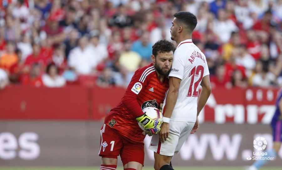 En la primera parte se volvió a ver un Celta tosco con el balón en los pies, un Celta que abusaba de los balones largos a Maxi en vez de trenzar jugadas con las que superar la presión del Sevilla. En estos primeros 45 minutos se vio un partido trabado y con continuos errores de ambos equipos. Y es que el conjunto local tampoco se estaba mostrando demasiado lúcido.