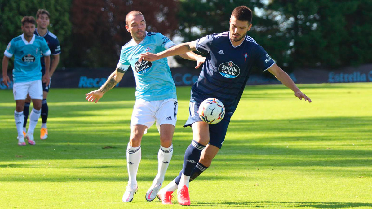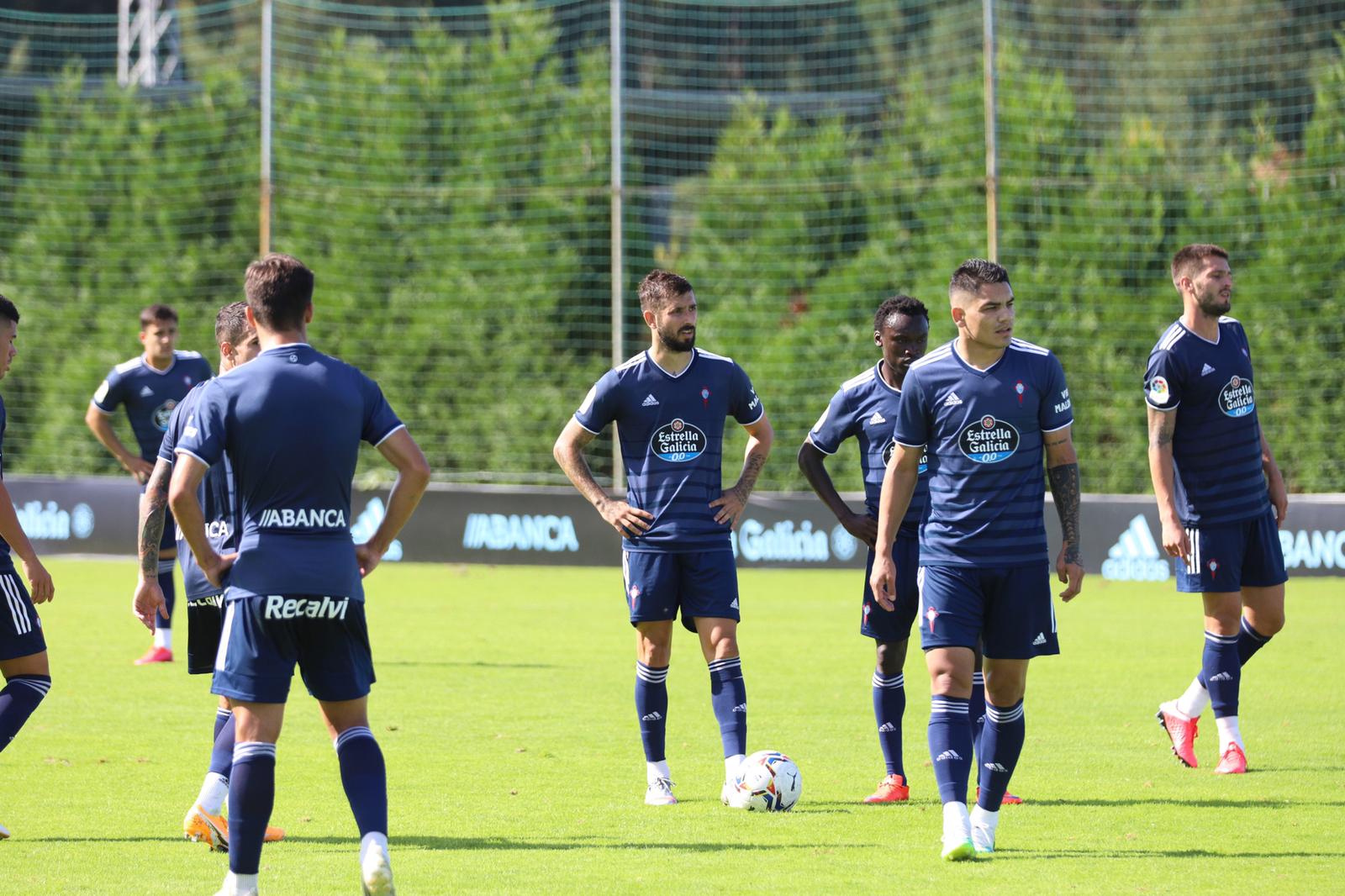 El RC Celta puso fin este sábado a su segunda semana de pretemporada con un partidillo de entrenamiento entre todos los jugadores disponibles en el que por primera vez estrenaron la nueva equipación que emplearán en la próxima temporada.