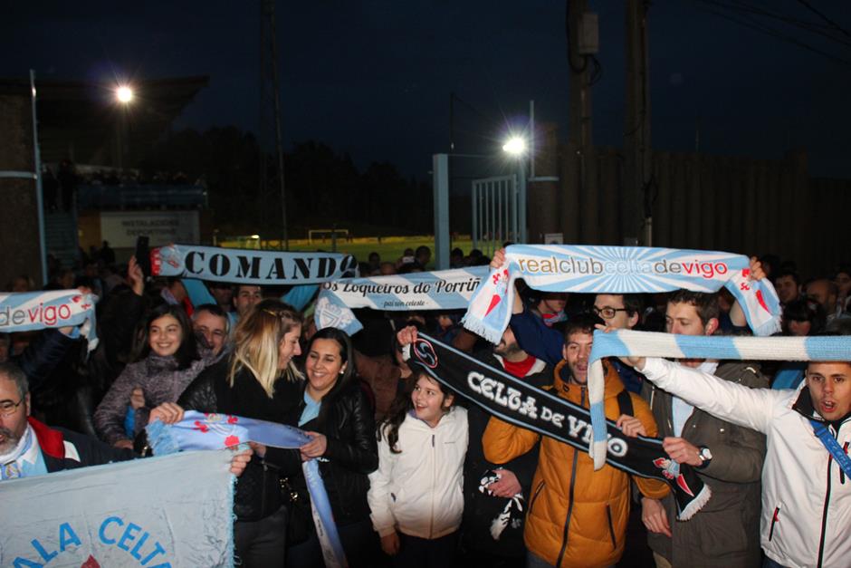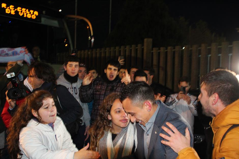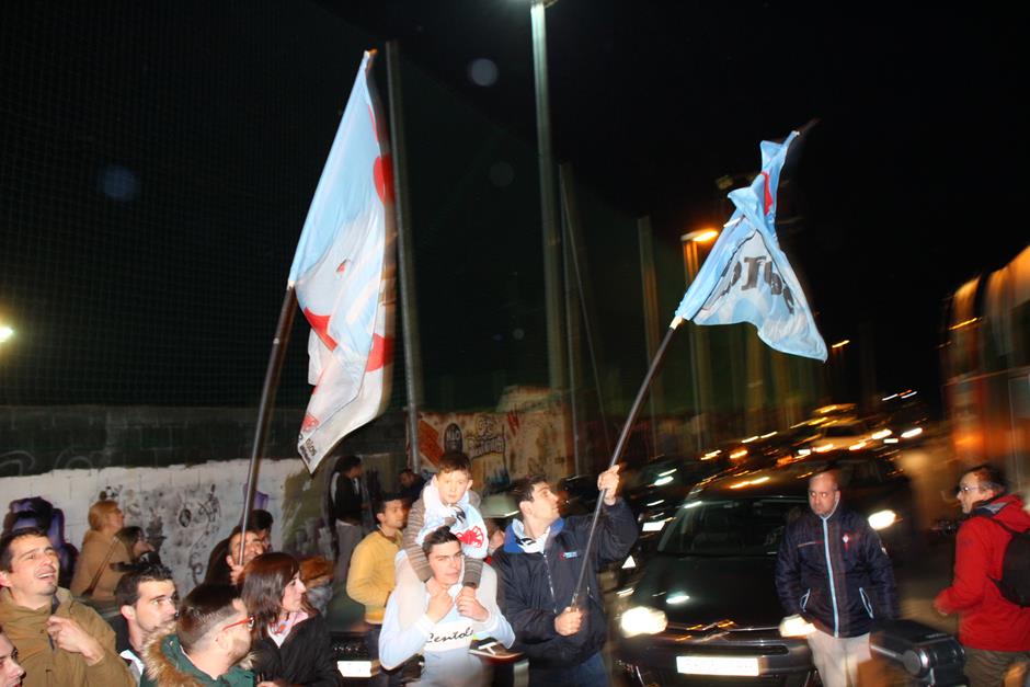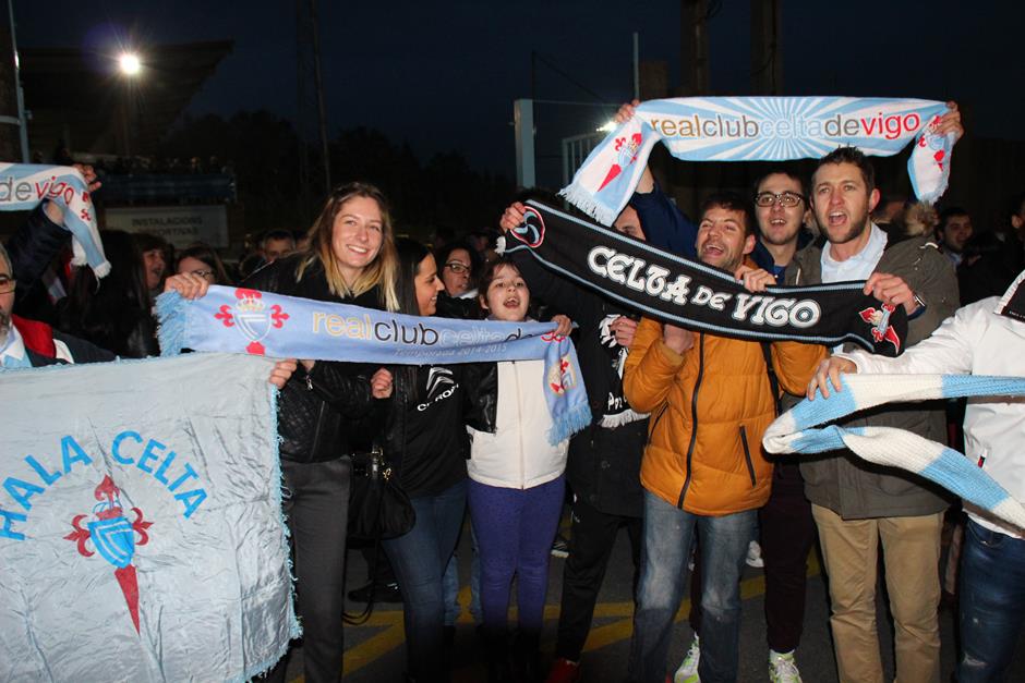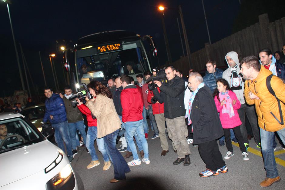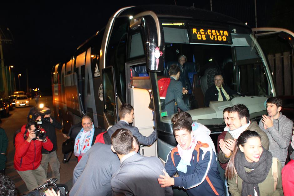 La convocatoria realizada por las peñas tuvo éxito y hasta A Madroa se desplazaron unos 400 seguidores del equipo vigués para despedir al equipo y darle su apoyo en el intento de alcanzar las semifinales de la Copa del Rey este miércoles en el Vicente Calderón. Entre los muchos aficionados que acudieron a la convocatoria destacaron los miembros de las distintas peñas, que portaban las prendas celestes de sus colectivos. También se encieron varias bengalas cuando el autobús puso rumbo al aeropuerto de Peinador. Los jugadores se subieron al autobús con una bella imagen del apoyo otorgado por la afición céltica. Y es que este míércoles llegará una oportunidad histórica en el torneo copero.