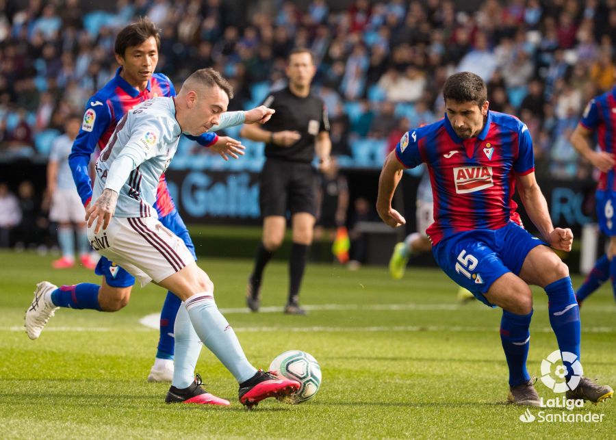 Y es que costó llegar, elaborar y dominar. El Eibar sabía perfectamente a qué quería jugar el equipo local y apretó en la salida de balón. La presión alta complicó las cosas a los celestes, pero con el paso de los minutos encontraron el camino a través de Rafinha.
