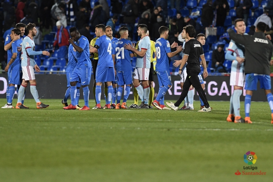 «En la segunda parte hemos completado unos grandes 45 minutos, el equipo ha ido de menos a más y hemos ganado a un grandísimo equipo como es el Celta. Se puede pensar que el Celta no ha hecho un buen partido pero ha sido motivado por el sensacional partido que ha hecho el Getafe. Hemos dominado todas las facetas del juego, hemos neutralizado a dos grandes delanteros como son Iago Aspas y Maxi Gómez, que llevaban entre los dos 27 goles. No nos han tirado a puerta, tiene mucho mérito lo que está haciendo el equipo», señaló Bordalás.