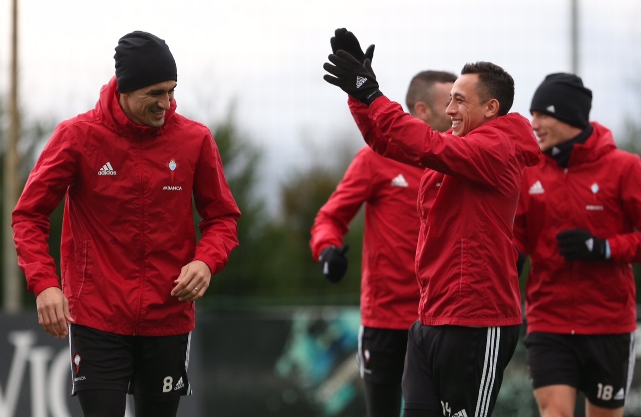 Los jugadores saltaron al césped entre aplausos. Los que fueron titulares ante el Atlético -salvo Guidetti, que arrastraba molestias-, se limitaron a realizar carrera continua. Cada vez que el pelotón celeste se aproximaba al fondo en el que se encontraba la afición, esta comenzaba a entonar cánticos. El primero, obviamente, dedicado a Tucu Hernández, el héroe del Calderón. «Tucu, Tucu, Tucu», coreaban los aficionados y Orellana también se sumó. El chileno comenzó a brincar y a aplaudir a su compañero de selección y ‘semicompatriota’. El Tucu, tímido, agachaba la cabeza y esbozaba una sonrisa.