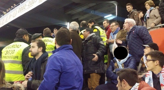 El incidente se produjo en Río Bajo, en una zona tranquila y alejada de posibles aficionados radicales. Además, varios testigos presenciales se quejaron de la actuación de la seguridad privada del campo. Según su relato, el integrante de este colectivo amenzado con sacar la porra para golpear a los que protestaron por la medida tomada e, incluso, otro aficionado del lugar sufrió una caída por las escaleras debido al tumulto y los empujones generados en la zona.