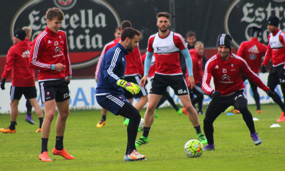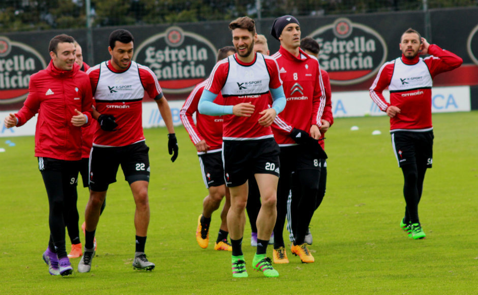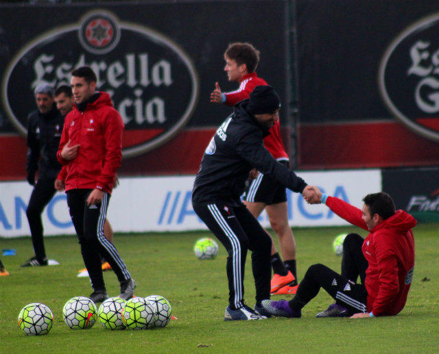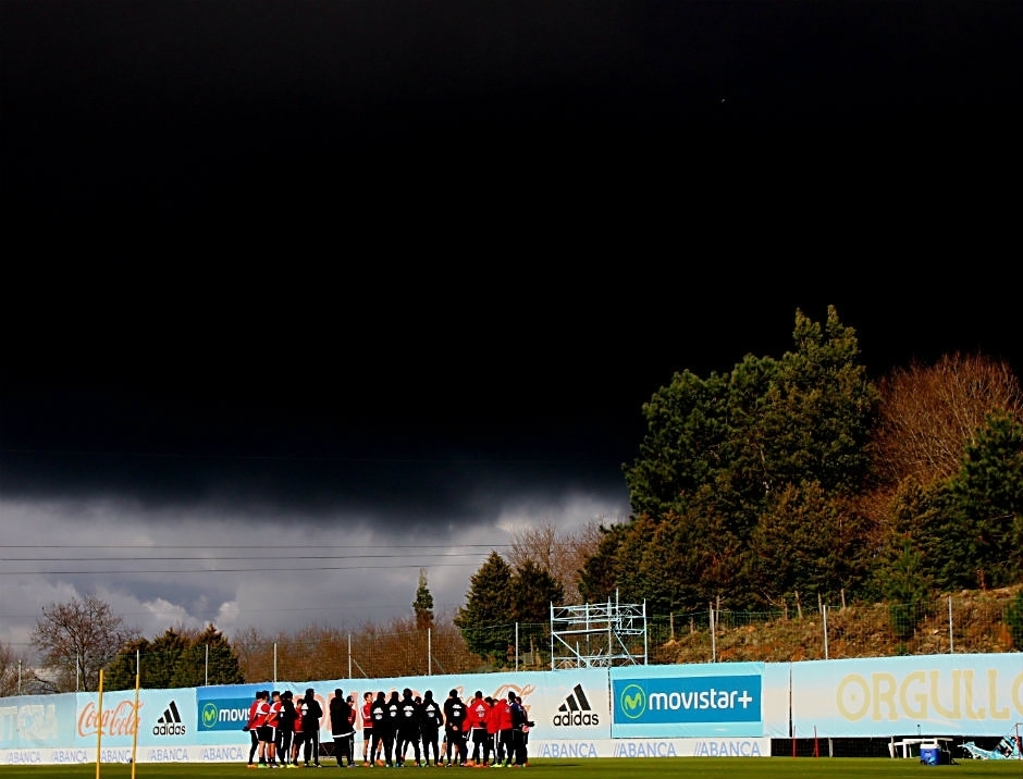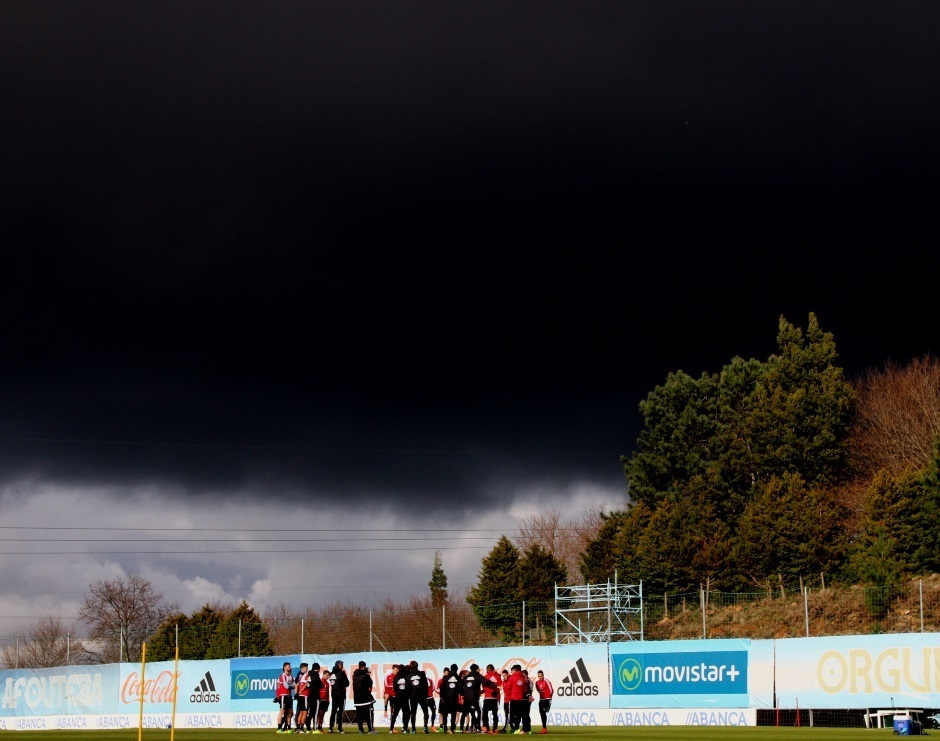 Así transcurrió la primera sesión de entrenamientos de la semana marcada por la felicidad y el buen ambiente y que, como es habitual, comenzó con la charla del entrenador, Eduardo Berizzo. Hubo aplausos bajo un tímido sol, mientras se acercaba una nube negra que amenazaba con pasar por agua la tarde. Y es que en el horizonte se atisba un campo también negro, el de la conocida como ‘Maldición de Getafe’. Mientras llega, el Celta disfruta de la victoria ante el Eibar y el buen ambiente en A Madroa.