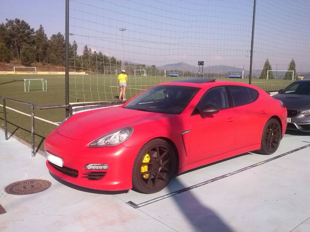 El moañés, un gran aficionado al mundo del motor, llegó al entrenamiento en un flamante Porsche Panamera, que sustituye al Lamborghini Gallardo con el que se presentó el año pasado