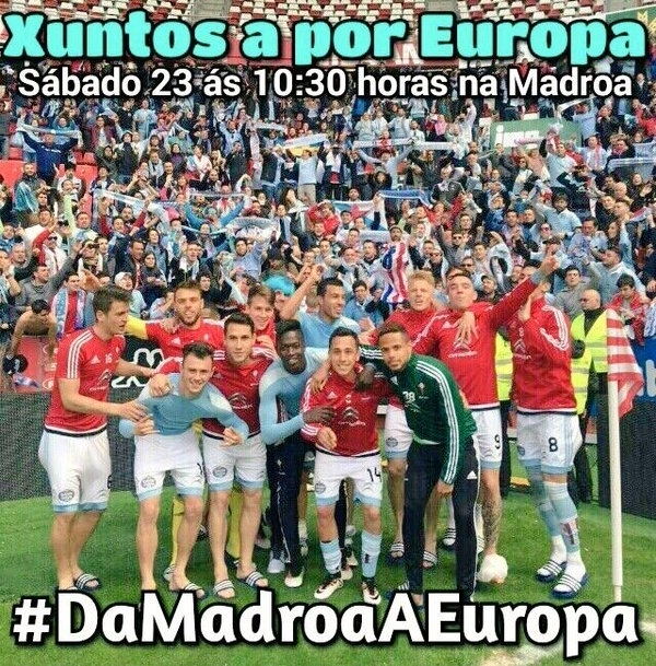 Varias peñas han organizado una quedada para el sábado bajo el lema «Xuntos a por Europa» y que se ha compartido a través de las redes sociales con la etiqueta #DaMadroaAEuropa y con la imagen de los jugadores junto a los aficionados que se desplazaron a Gijón tras la victoria ante el Sporting. Los impulsores de esta iniciativa citan a la afición para que acuda el sábado a las 10:30 a las instalaciones de A Madroa, coincidiendo con el inicio del único entrenamiento a puerta abierta del Celta de esta semana.