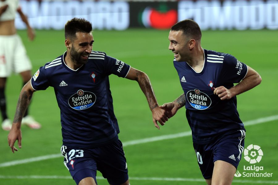 El delantero vigués fue un pilar fundamental en la resistencia viguesa y el desahogo de la jugada cuando más presionaban los sevillanos. Nolito dejó su sitio a Okay para ayudar en el trabajo de contención de Tapia y Denis cayó a la parcela que dejó el gaditano.