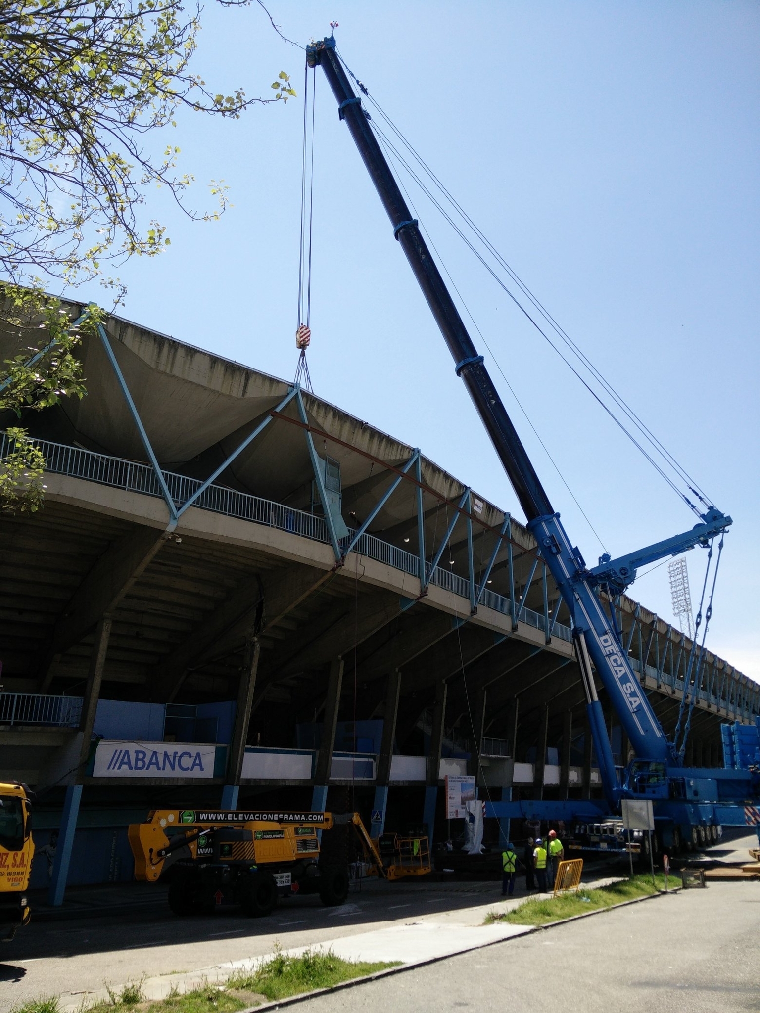 Esta fase de las obras es quizá la más compleja y hubo que esperar a que finalizase la temporada para iniciarla. Esta grúa, la más grande de Galicia, retirará las 22 bañeras de hormigón que componen la estructura a un ritmo de dos al día. Cada una de estas bañeras pesa 85 toneladas y están situadas a 19 metros de altura. Este lunes, el inicio de los trabajos causó gran expectación en Balaídos y numerosos curiosos se acercaron hasta las proximidades del estadio para ver el avance de las obras.