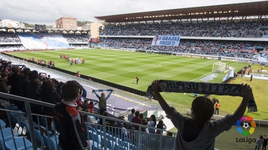 Ya dentro del estadio, se desplegó un tifo en la grada de Marcador y otra pancarta en Río lució, a iniciativa de las peñas, con el lema «Grazas Presi». Se lanzó confeti para teñir de ambiente festivo las gradas del viejo estadio vigués, que volverá a ser testigo de grandes noches europeas.