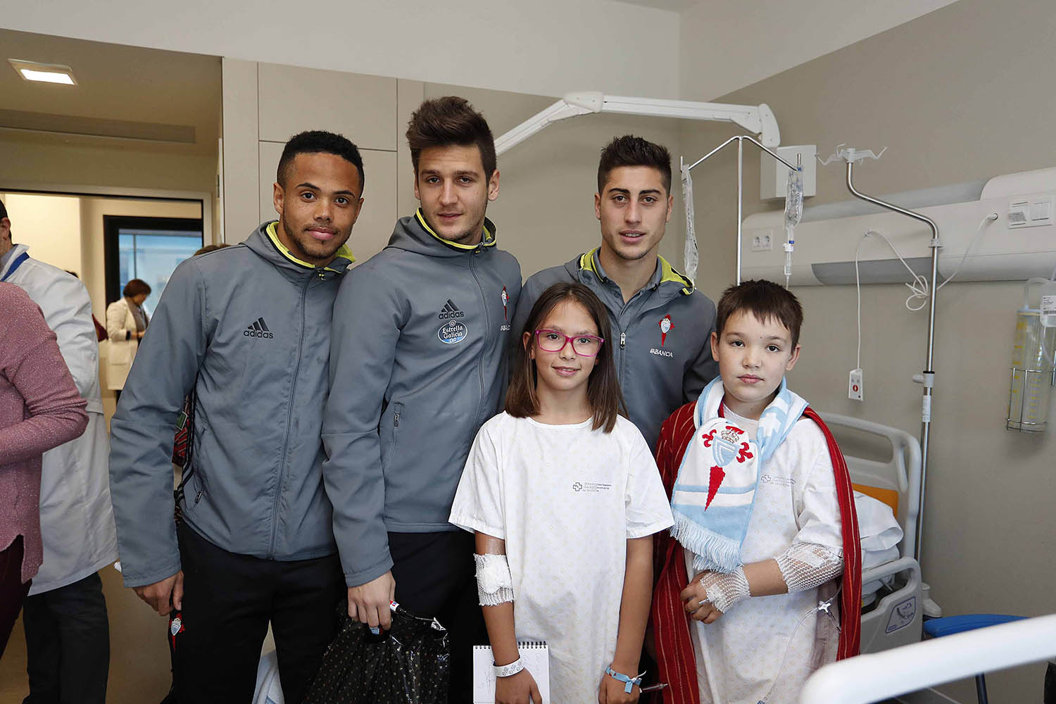 Esta tradicional visita navideña a los niños ingresados en Pediatría constituye uno de los actos más emotivos y gratificantes para el RC Celta y su Fundación por la sonrisa y la ilusión de los pequeños en unas fechas muy especiales. A la visita asistieron el presidente del club, Carlos Mouriño, la totalidad de los jugadores y cuerpo técnico del primer equipo y los directores de la entidad celeste.