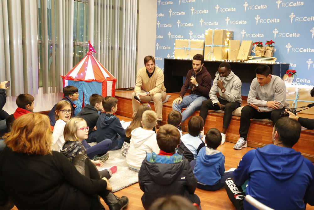 La plantilla del Celta repartió sonrisas y regalos entre los niños del Cunqueiro