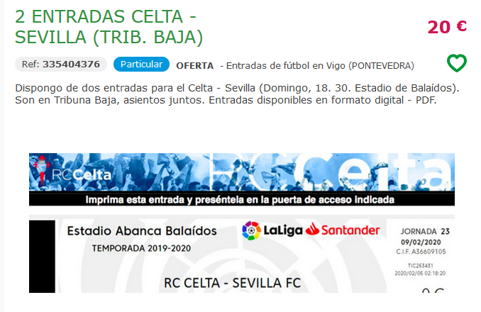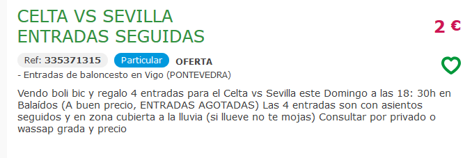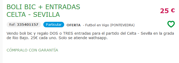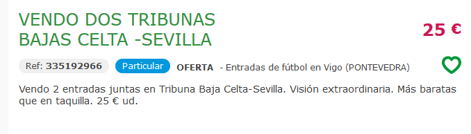 Algunos lo hacen con el clásico boli BIC por medio, otros ya ni eso. Los precios son variados. 20 o 25 euros por una localidad para Tribuna Baja, 25 euros para Río Bajo o una cantidad a determinar por hasta cuatro asientos. Incluso se llega a garantizar “zona cubierta de la lluvia (si llueve no te mojas)” o a prometer una “visión extraordinaria”.