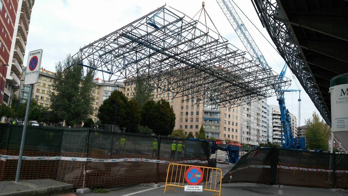 Caballero también aseguró que esta fase de las obras estará finalizada antes del 20 de octubre y que a partir de ahí se procederá a colocar las piezas de aluminio que deben servir como cubierta. «Es una estructura metálica. Tiene 217 engarces y 835 barras. Fue montada in situ. Lleva una pasarela de 60 metros de largo, por lo que se pueden cambiar las luminarias sin necesidad de utilizar una grúa. Antes del 20 de octubre estarán las dos estructuras colocadas y encima irán las cubiertas de aluminio, que comenzarán a instalarse a partir de ese día», señaló.