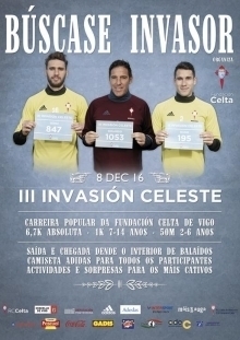 Para participar en la tercera “Invasión Celeste” deberá realizarse la inscripción en la página web de magma sports hasta el día 4 de diciembre, con descuento especial para aquellos que se inscriban antes del 30 de noviembre. Todos los participantes recibirán con su inscripción al evento una camiseta técnica de la marca Adidas. Al igual que el pasado año, los dorsales se entregarán en una de las tiendas Piñeiro Sport en Vigo el día anterior a la carrera y el mismo día de la carrera en el estadio de Balaídos.