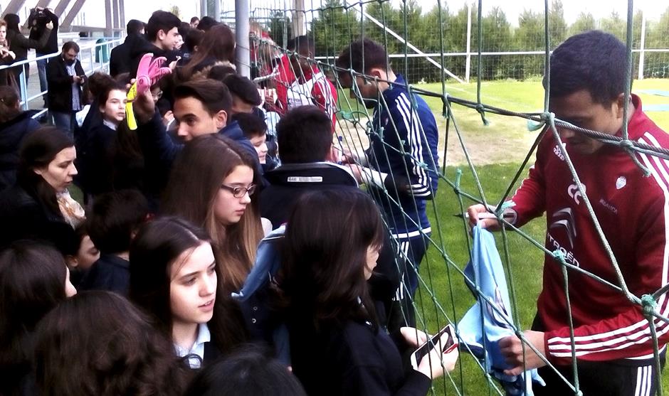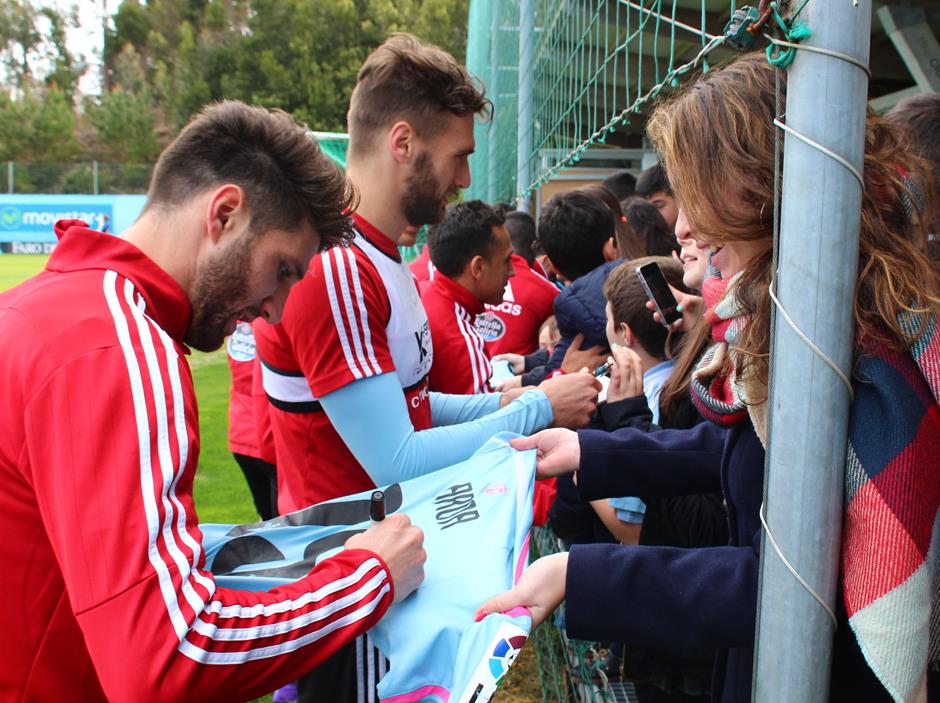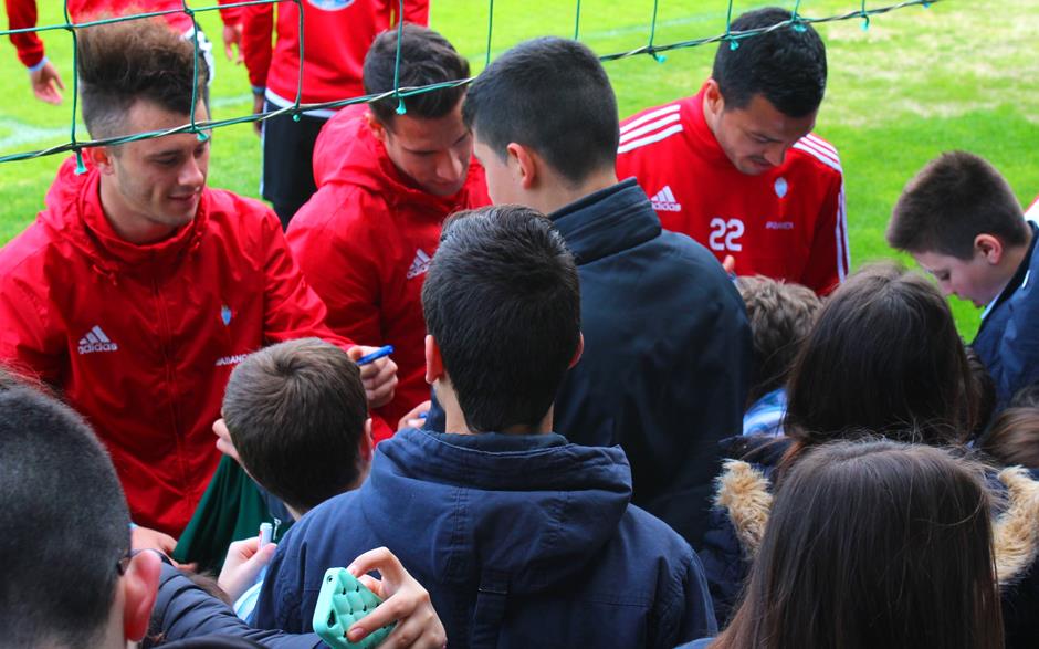 Tras seguir los minutos finales de la sesión de entrenamiento realizada por el Celta, los jugadores se acercaron a la grada para estampar su firma en un bloc o un folio, aunque también lo hicieron en camisetas de los jóvenes aficionados. No faltaron los habituales ‘selfie’, en este caso más generales entre los aficionados de edad adolescente. Manuel Agudo ‘Nolito’, como de costumbre, fue uno de los más solicitados aunque también sorprendió la popularidad de Dejan Drazic entre los jóvenes. No obstante, todos los jugadores que decidieron acercarse hasta la grada recibieron una importante dosis de cariño. Es la ilusión del joven aficionado.
