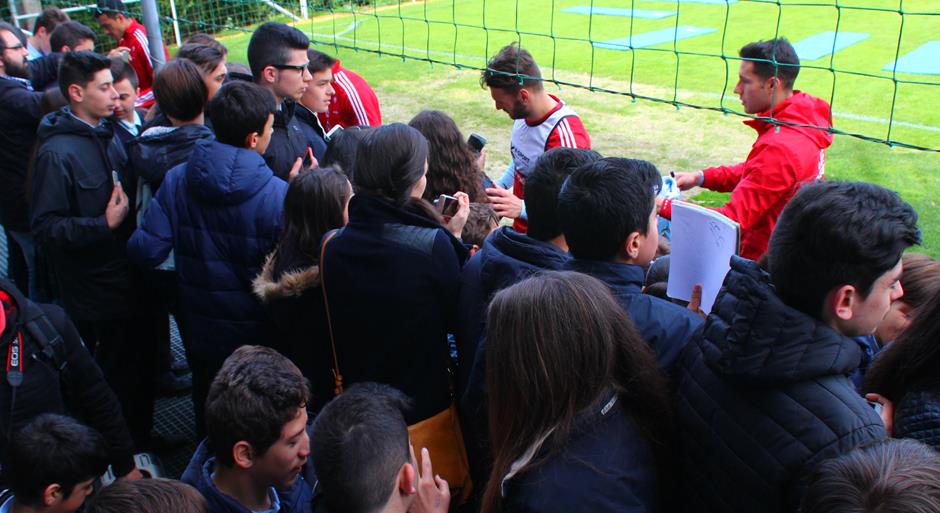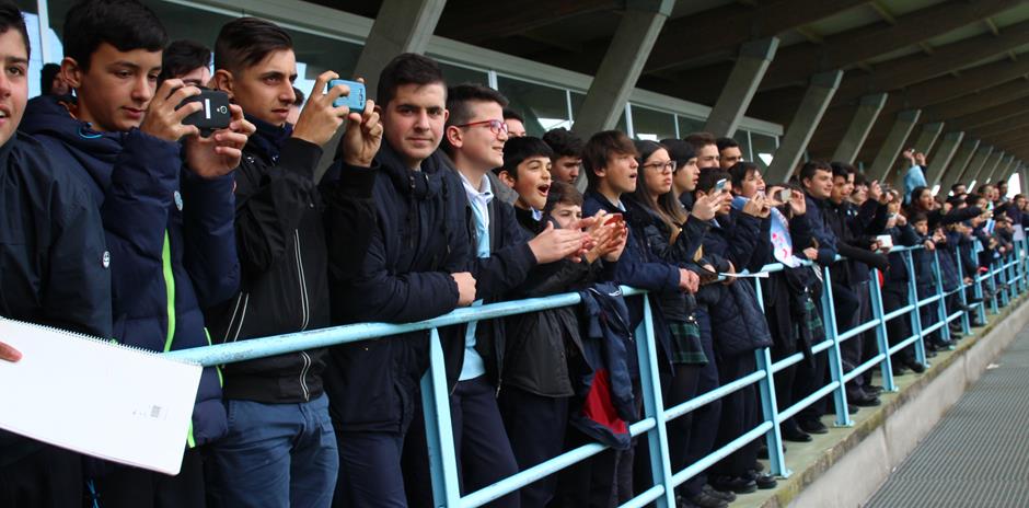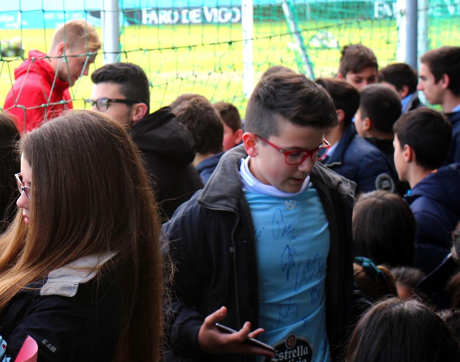En muchos de los entrenamientos a puerta abierta del equipo vigués la plantilla del Celta recibe la visita de escolares. Este viernes soprendió el número de los niños procendentes del centro educativo de Mondariz por su número. Y es que llegaron a las instalaciones del club vigués menores desde primaria hasta secundaria. Varias edades y, aproximadamente, un centenar de menores. Casi todos con la vestimenta del centro educativo y alguno de ellos con adornos de color celeste, por lo extradordinario de la visita.