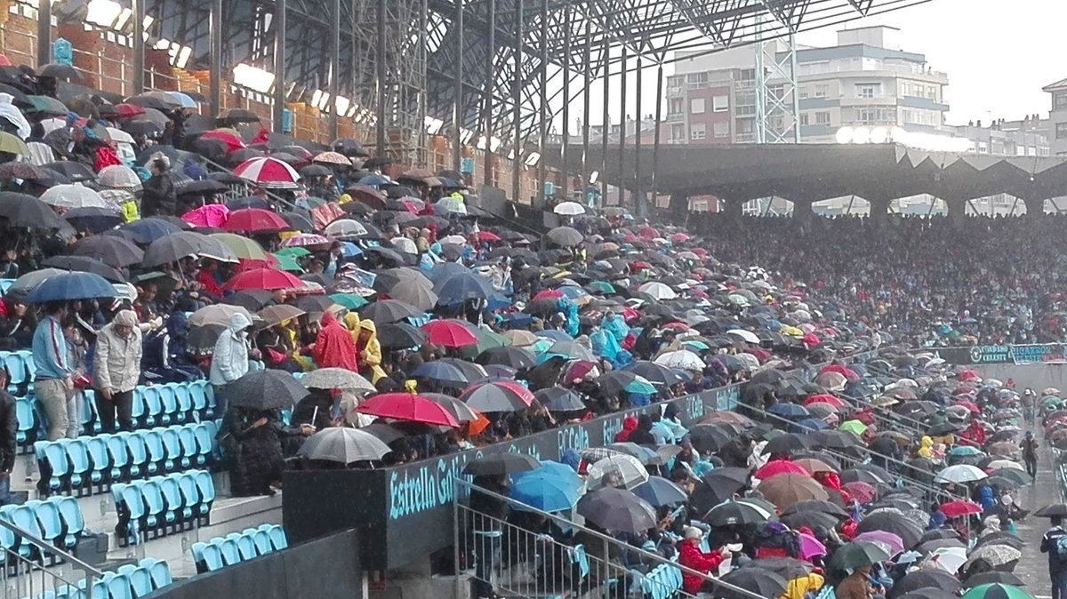 Por otro lado, Balaídos presentó una entrada peor de lo esperada. La amenaza de lluvia y el alto precio de las localidades provocaron que algunos aficionados no acudiesen al estadio. Y la amenaza de lluvia se cumplió, ya que en en el minuto 25 de la primera mitad comenzó a caer agua con mucha fuerza. Los paraguas afloraron en la grada de Tribuna, que todavía no cuenta con su cubierta. También se mojaron las autoridades en el palco provisional. Curiosamente, el único que no abrió su paraguas fue el presidente Carlos Mouriño.