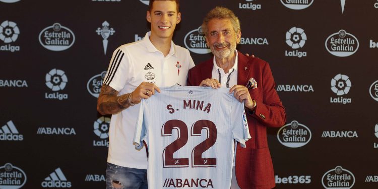 Santi Mina, quien firma cinco temporadas, debutó en Primera División con el Celta en febrero de 2013, con 17 años de edad, sustituyendo a Iago Aspas, con el que volverá a compartir vestuario y delantera a partir de ahora. Con el primer equipo celeste anotó doce goles.