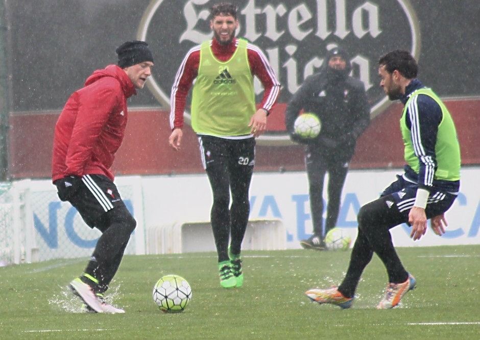 Los futbolistas realizaron una sesión de entrenamiento suave y con la participación de Eduardo Berizzo en uno de los partidillos. El técnico del Celta estaba inmerso en el ejercicio al igual que los guardametas Sergio Álvarez y Rubén Blanco. Buen método para evitar encogerse por el