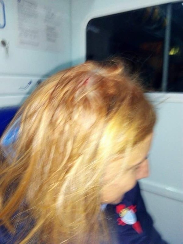 La seguidora del Celta, integrante de la Peña Sempre co Celta, ubicada en Río Alto, comenzó a sangrar al recibir el impacto y tuvo que ser atendida por los servicios sanitarios. Una ambulancia la trasladó hasta el hospital Povisa, donde recibió dos puntos de sutura.