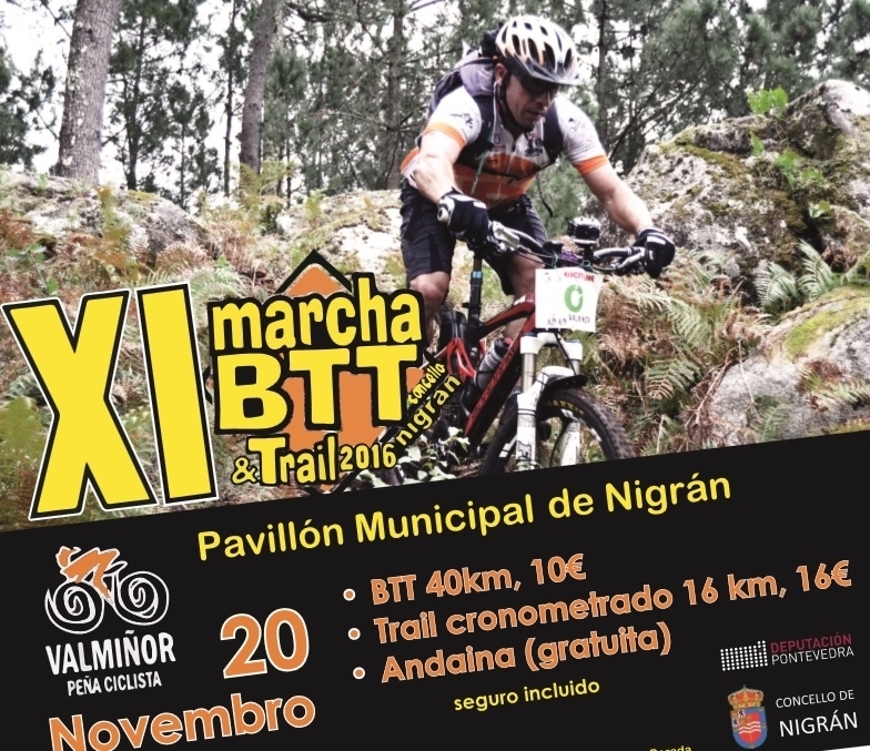 A marcha BTT & Trail e andaina do Concello de Nigrán é ante todo unha marcha de amigos, onde o único realmente importante é participar e disfrutar dunha paisaxe que fusiona mar e montaña para practicar un deporte que require esforzo, habilidade, capacidade de superación e respeto á natureza.