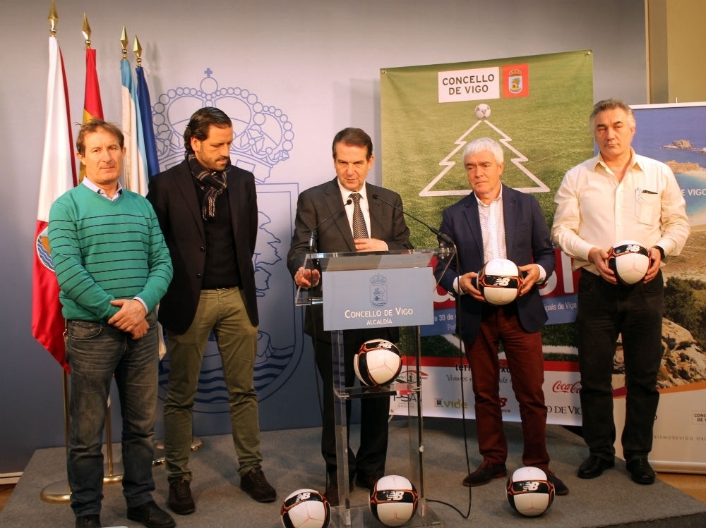 «Este trofeo empieza a convertirse en una de las grandes acciones de cada Navidad», subrayó el regidor, que indicó que será un evento de «récord con 139 equipos inscritos», además de cuatro conjuntos de otras provincias (Deportivo, Lugo, Ponte Ourense y Conxo) que junto al Celta disputarán el novedoso torneo autonómico alevín el viernes 30. Caballero estuvo acompañado por el concejal de Deportes, Manel Fernández, representantes de la Asociación de Fútbol Aficionado (Daniel Costas y Agustín Rodríguez) y Juan Andonegui (Frutas Nieves).