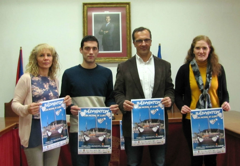 El alcalde de Baiona, Ángel Rodal; la concejala de Deportes, María Jesús Martíns; la secretaria del Club Bádminton As Neves, Ana Durán; y el responsable de promoción de la Federación Galega de Bádminton, Pablo Méndez, fueron los encargados de presentar este jueves en el salón de plenos del Concello de Baiona una competición que traerá a Baiona a unos 150 jugadores.