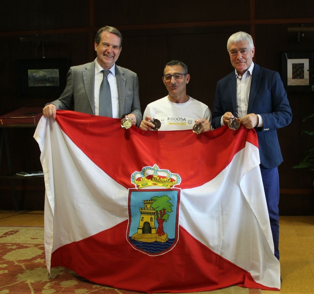Caballero, acompañado por el concejal de Deportes, Manel Fernández, bromeó con Chano, ganador de cuatro medallas en los Europeos, una de oro (en 50 metros estilo libre, su prueba favorita) y tres de bronce (relevo mixto 4×50, 100 y 200). «No se te puede dejar solo, ya te dije que dejes ganar alguna vez a los demás», le comentó el regidor entre risas.