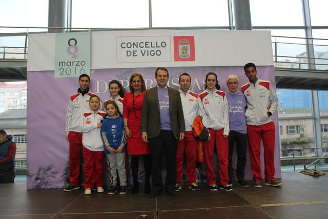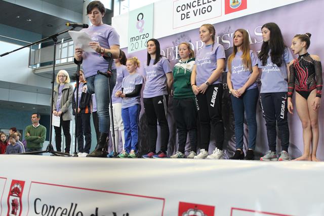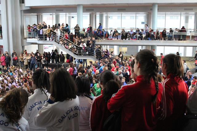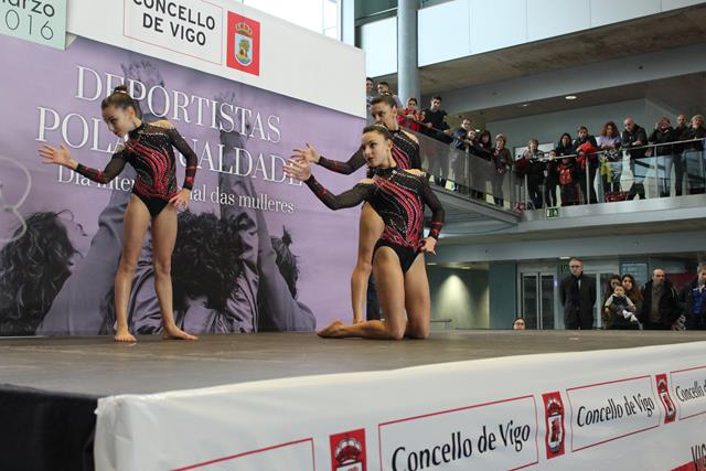 El ‘hall’ del auditorio municipal presentó un magnífico aspecto con un lleno absoluto. En el acto participó el alcalde de Vigo, Abel Caballero, y la presidenta de la Diputación de Pontevedra, Carmela Silva. Además, tambien se realizaron varias exhibiciones realizadas por deportistas de la ciudad de esgrima y gimnasia. Se leyó un comunicado y las integrantes de diferentes clubes pasaron por el escenario.