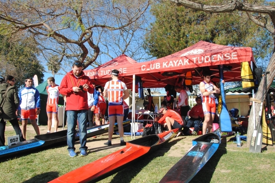 Comenzó un trabajo calculado al milímetro. El Kayak Tudense instala dos carpas en una zona estratégica del campo de regatas. Es el primero en llegar allí y tiene sus ventajas. Está cerca de la zona de pesaje de los barcos, poco alejada del pantalán de embarque y se controlan perfectamente todas las salidas de las regatas. También los primeros metros de la competición, que suelen ser los más importantes.