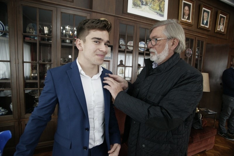 González Ballesta, acompañado de varios miembros de la junta directiva, impuso al jugador el pin de oro de la sociedad (la grímpola del club) y entregó el diploma acreditativo.