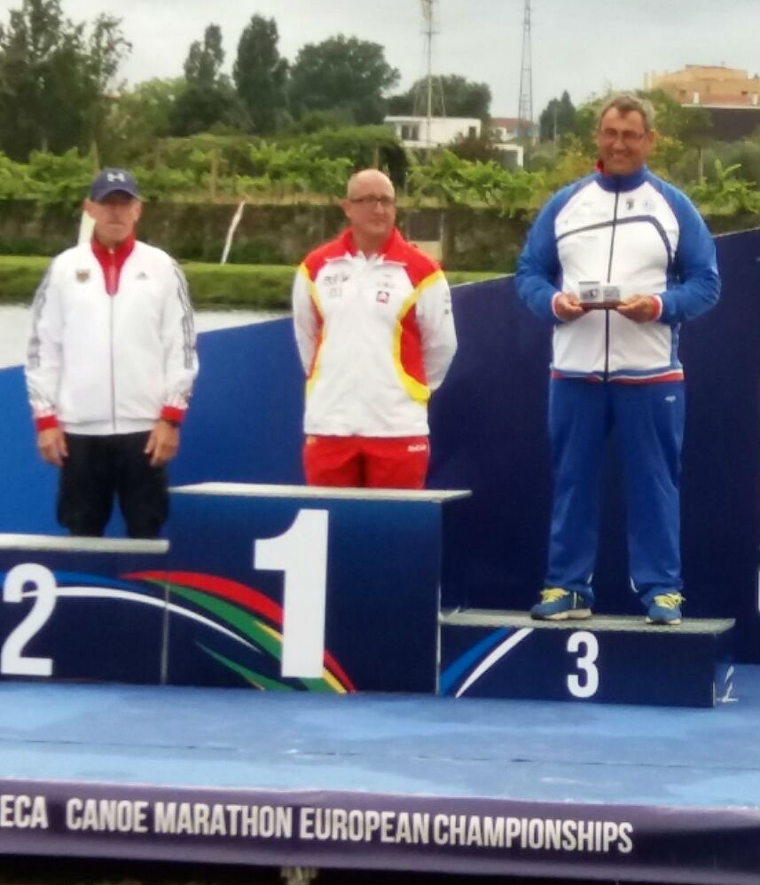 Las primeras medallas para el Kayak Tudense las conquistaron Enrique Míguez e Iñaki López. El primero de ellos demostró su capacidad de superación en C-1 en la categoría de veteranos. El medallista olímpico en Los Ángeles, demostró que no ha perdido su ansia por competir. Junto a su compañero Iñaki López también logró el bronce en C-2.