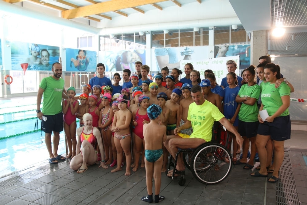 As rapazas e rapaces de entre 8 e 14 anos fixeron un último adestramento con estes dous deportistas nas piscinas de Máis que Auga e tiveron ocasión de conversar con eles, coñecer a súa vocación deportiva e mesmo de darlles ánimo e consellos para competir con éxito nos Xogos Paralímpicos de Río de Janeiro 2016. Os paralímpicos vigueses parten esta mesma semana cara a Río de Xaneiro, donde se celebran os Xogos Paralímpicos entre o 7 e o 18 de setembro.