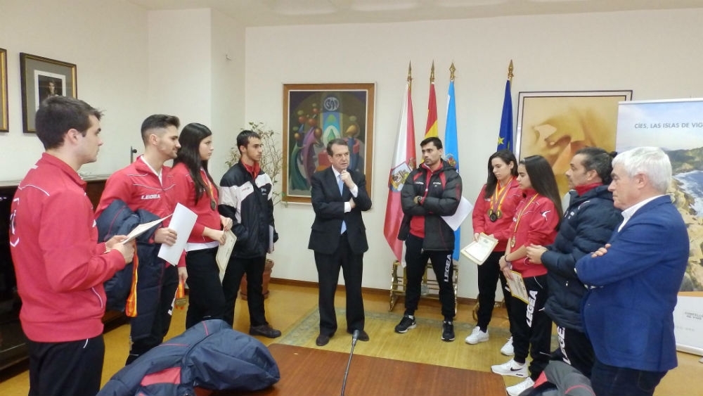 Abel Caballero recibiu este luns a representantes do club vigués de taekwondo e ao recente gañador da Copa de España de judo
